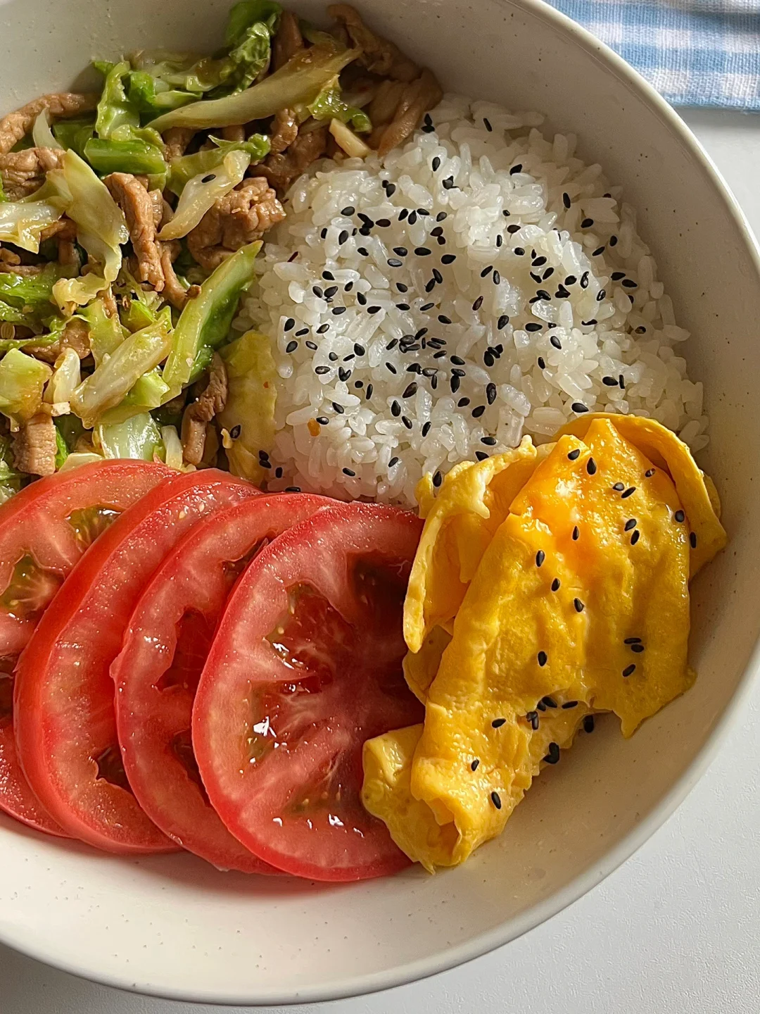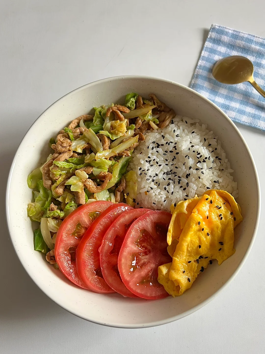 今天吃的是包菜炒肉丝➕滑蛋➕番茄,做起来很简单!