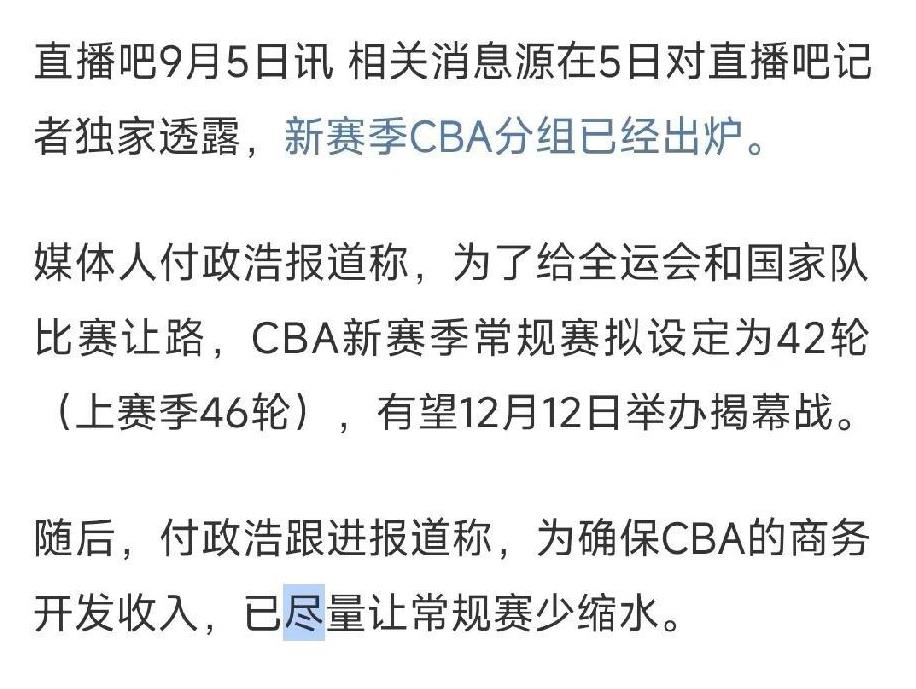 CBA新赛季比赛场数比上赛季少4场! 前几日,CBA新赛季球队分组已经出炉,而新
