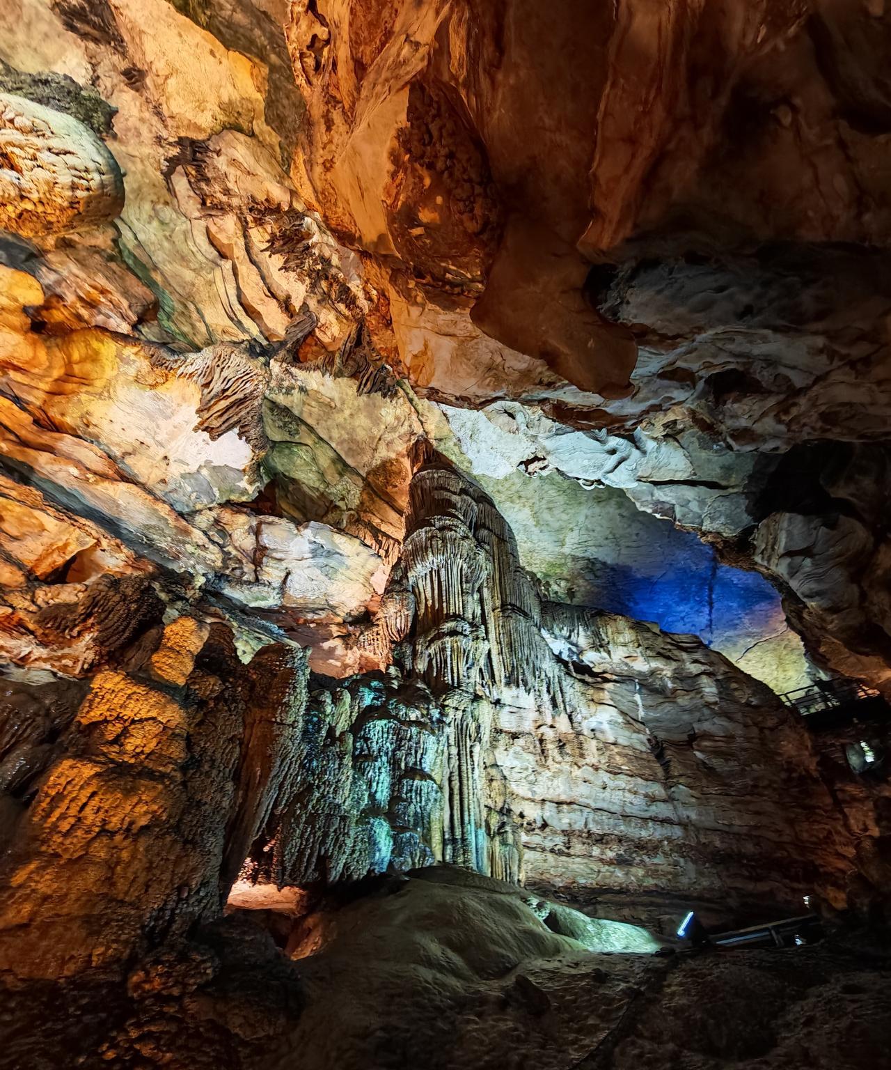 来贵州旅游已经七天,今天来打卡位于遵义市绥阳县温泉镇的双河洞。 双河洞是12背后其中一个景点,整个12背后还包括银河飞拉达、地下裂缝等等。 景区很大,也很分散,认认真真玩的话,得两天时间。 双河洞目前是亚洲第一,世界第三的洞穴,也被誉为“喀斯特天然洞穴博物馆”。 洞穴内灯光美轮美奂,仿佛到了魔幻世界。 我们是七夕抖音搞活动时团购的,248元一位。含景区观光车、观光电梯、飞拉达、窝囊板蹦极、赠送六张照片,赠送咖啡,赠送地下裂缝门票,感觉非常划算。 洞口还可以玩桨板,整个景区非常凉快,溶洞像一个巨大的空调。 今天超级开心,因为体验了飞拉达和网红悬崖咖啡,还有窝囊版蹦极。 虽然是窝囊版的,但对于我这个快60岁的老阿姨来说,也是很有挑战性的。 今天在双河洞游玩体验非常好,天气不错,景区人也非常少,景区活动参与项目都很高。 建议想过来玩的朋友千万不要旺季来。 #记录我的2025#