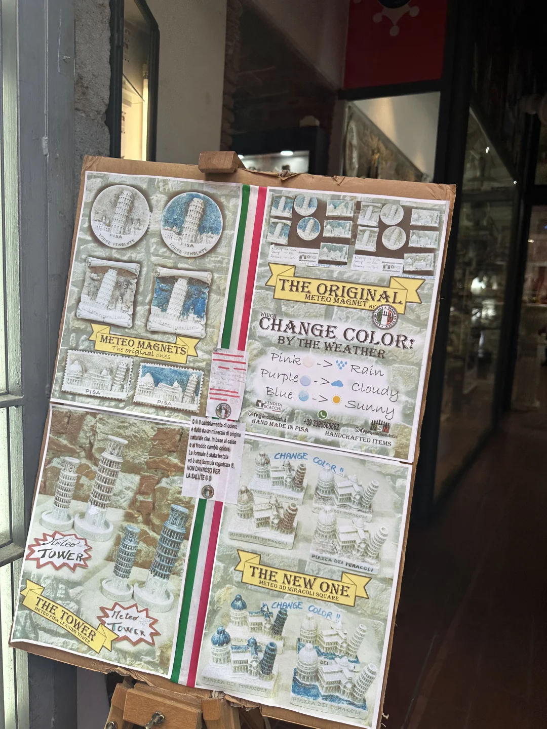 自由行的话,一定要做好攻略 这一篇是本人这次从佛村去Pisa总结的一点点🤏 — 1️⃣ 从佛罗伦萨出发(FIRENZE S. M. NOVELLA)建议坐火车到PISA S. ROSSORE 火车站,步行10分钟就到塔🚶 PISA CENTRALE 站需要半个小时(但有行李寄存) 2️⃣ 在火车站买的实体票需要在上车前激活 看到图5机器,把票对准左边即可 ⚠️要不然罚款€60 3️⃣套票€27,所有通行不带登顶的话是€11🎫 除斜塔外,其他景点凭票自由进出,无时间限制。 但斜塔需预约时间,务必准时,否则可能无法入场 4️⃣ 斜塔共有273级台阶(只能爬上去)途中有一处观景台,顶端有大🔔 攻略有人说不太能感受到倾斜,但个人觉得还是挺斜的 5️⃣凭票可免费使用洗手间,博物馆内的洗手间无需排队 6️⃣拍照不可以踩草坪,但是可以站在石墩子上(注意安全~) 7️⃣想要买变色的冰箱贴,导航到📍 113 viasantamaria srl,€5一个(图11是小店门口) — 碎碎念:如果有遗漏的tips,欢迎大家在留言! —