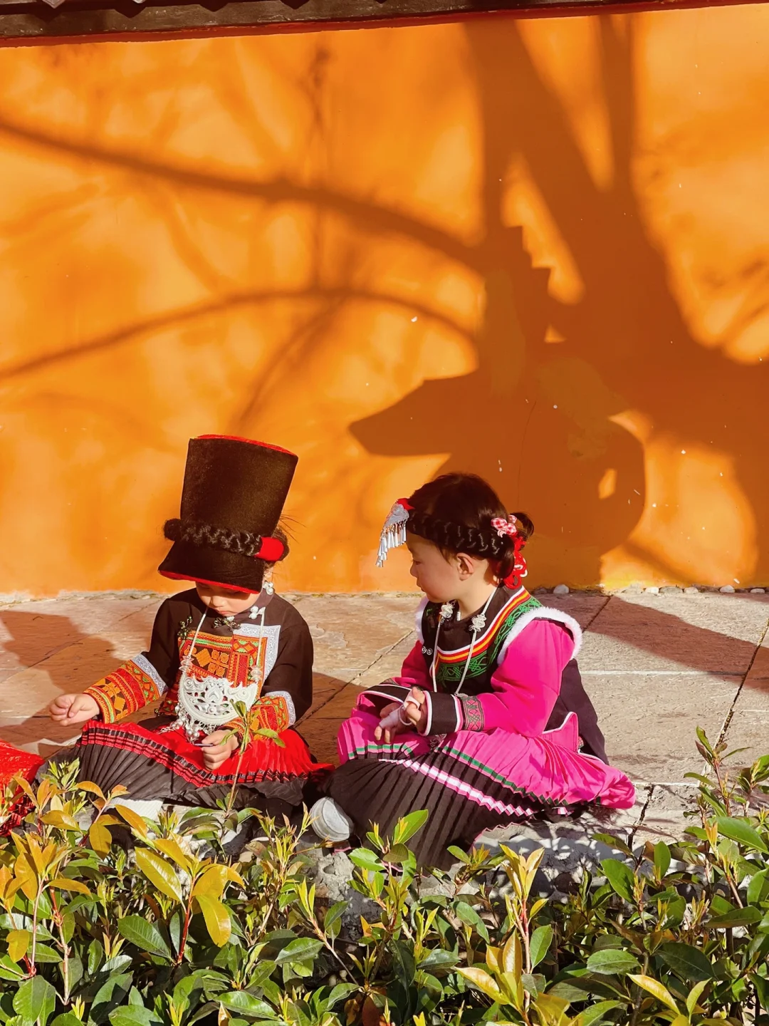 乘坐106在大石板村下车,这里橙色的墙面搭配好天气真的太出片了,还可以租一套彝族服饰来拍照,村里还有一个灵鹰寺
