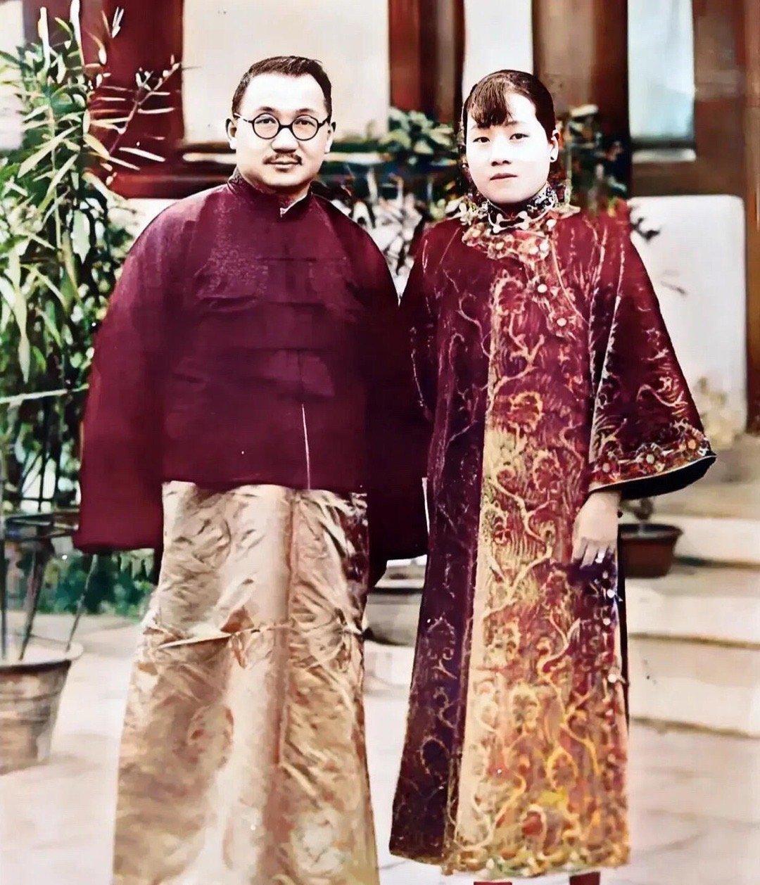 1914年,孔祥熙和宋霭龄新婚合影。二人都穿传统红色的中式服装,显得十分喜庆。 相对于孔祥熙中规中矩的长袍马褂,宋蔼龄的旗袍则明显做了改进,在雍容华贵之上,又增添了一些洋气。 尤其是宋蔼龄脚上穿的那双红色高跟鞋,更将她的留洋背景展露无遗。 宋蔼龄在三姐妹中,可能是最有钱的,不过,要说长相,恐不及两个妹妹。 大家觉得,三姐妹中谁最好看?#孔祥熙旧居# #孔祥熙公馆#