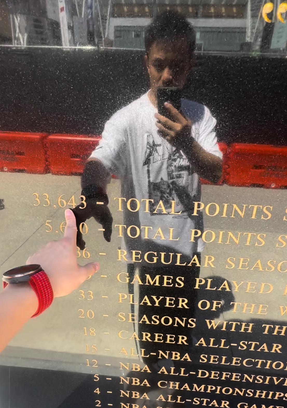 赵继伟在美斯台普斯中心参观科比雕像,用“8”、“24”致敬曼巴精神。 9月7日4