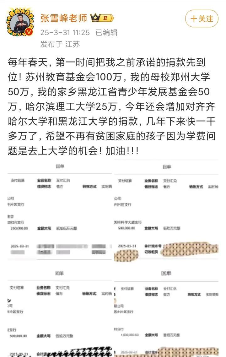 张雪峰卡说枪响那天捐5000万是有底气的,但凡一个正常的有良知的中国人都不会怀疑朴素的对祖国统一的执念。 然后很多人很不服气,说共产主义实现那天我捐100亿美金,我不知道如果真到了那天张雪峰会不会捐,但是我知道张雪峰卡里真有5000万,不服气张雪峰的人卡里有多少我就不知道了。 人总是对自己办不到的事情理所当然认为别人也办不到,还有人说张雪峰是要走爱国赛道,咋了,凭啥爱国赛道不能走?现在很多人恨国赛道走不通了也不让别人走爱国赛道?难道爱国饭不吃吃恨国饭吗?