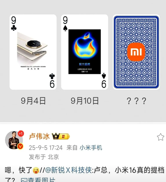 不等了,彻底不装了。 小米16,提前了。 这下有意思了,九月简直是神仙打架。 前脚华为刚掏出个三折叠的王炸,后脚苹果的“科技春晚”也快开席了,结果小米直接把桌子给掀了,说不等了,咱们提前开干。 听说是十W大佬确认的,基本稳了。 高通那颗新U的首发基本是标配,没啥好聊的。 我倒是好奇那个传闻中的澎湃3,到底藏着什么活儿。 是充电?是影像?还是别的什么…… 这几年,讲实话,换手机的欲望越来越低了。 性能都过剩,长得也大差不差。 就看今年这几位,能不能真刀真枪地干一场,给我们这种老用户搞点新鲜感了。