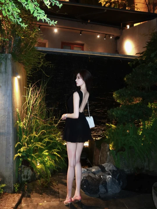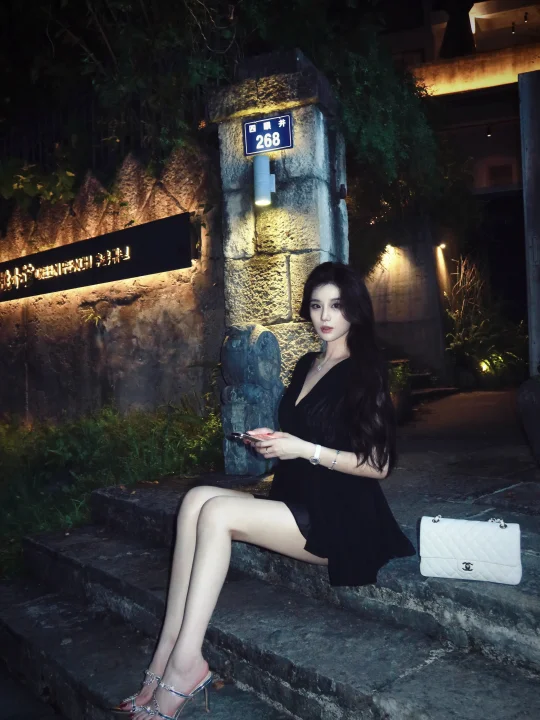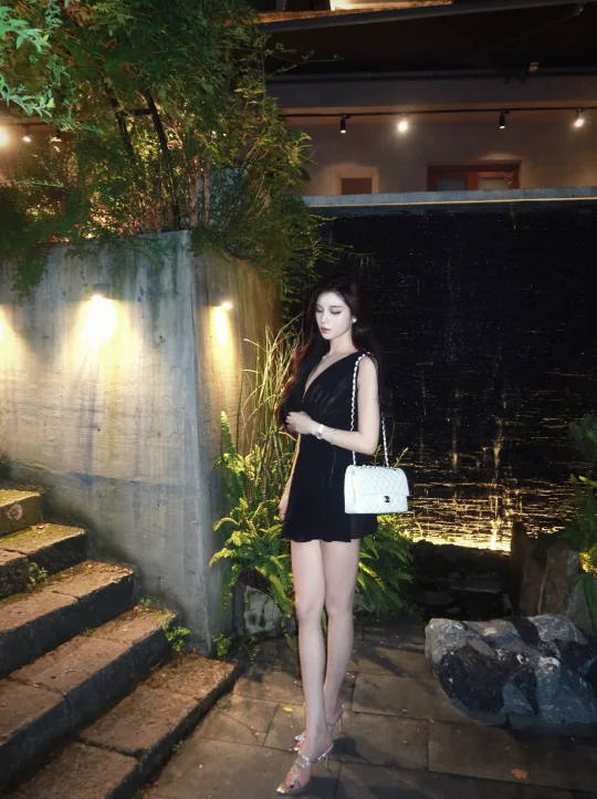 黑色高开叉裙大长腿美女,谁不爱?