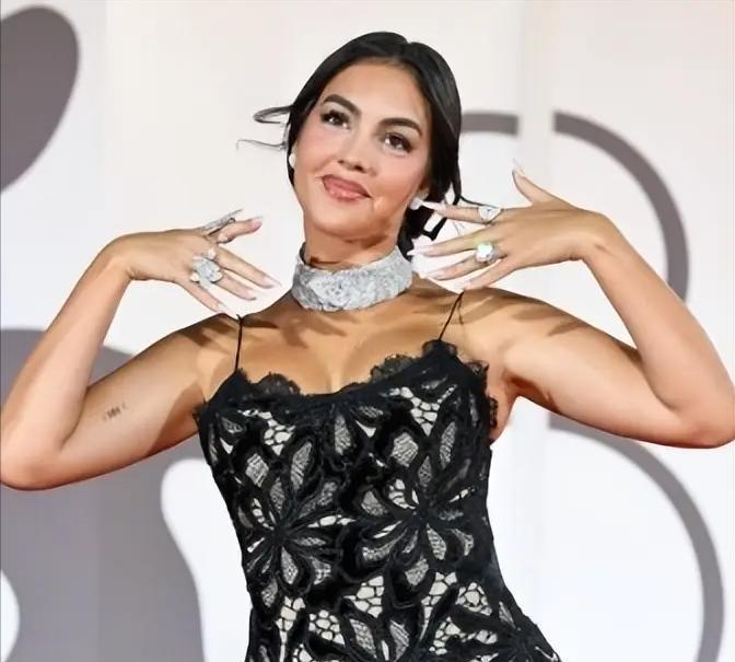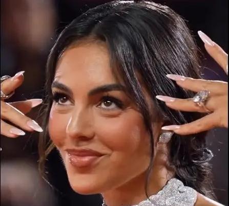 C罗未婚妻在电影节红毯上大秀鸽子蛋钻戒 这应该是C罗求婚之后乔治娜的首次公开亮相