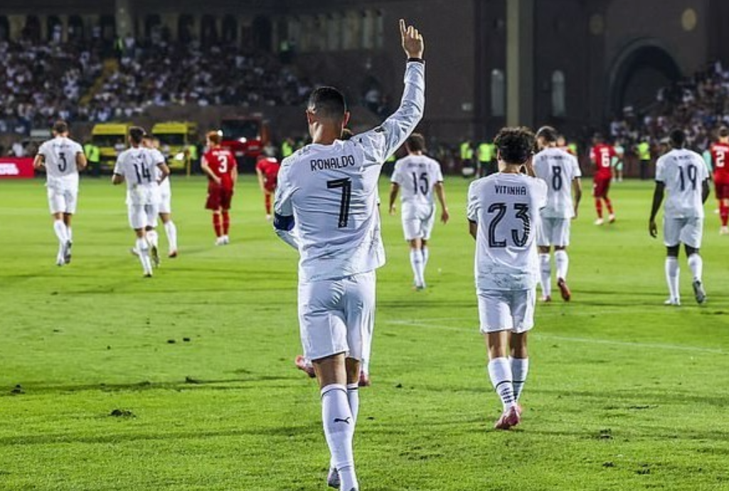 世界杯欧洲区预选赛,葡萄牙在客场5-0大胜亚美尼亚。本场比赛,葡萄牙球星C罗上演梅开二度,在比赛第21分钟进球后,C罗双手指天向已故队友若塔致敬。 本场比赛第10分钟,若昂-菲利克斯率先破门。11分钟后,C罗接内托传中后抢点破门。进球后的C罗双手指向天空,将这粒进球献给了此前因车祸离世的队友若塔。 此后,坎塞洛锦上添花,将比分改写为3-0。进球后,坎塞洛特意模仿了若塔标志性的打电动庆祝动作,用若塔生前熟悉的方式,对这位队友进行致敬。
