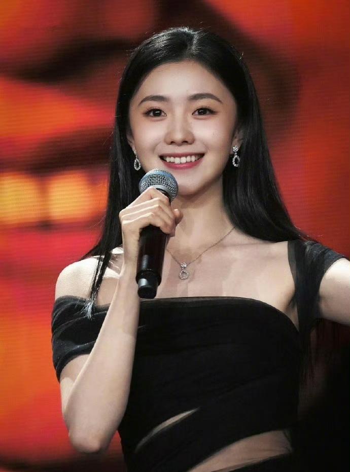 一袭黑色网纱礼裙,在光影间勾勒出优雅线条,露肩与腰侧的透视设计增添了几分灵动,步履间尽是温柔又耀眼的魅力。
