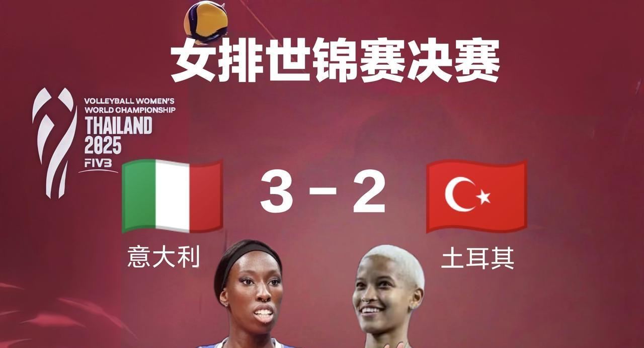 意大利女排3-2战胜土耳其斩获冠军,土耳其获得亚军 北京时间9月7日20:30,2025年世界女排锦标赛,最后一场冠军争夺战,上演了一场巅峰对决,由世界第一意大利女排迎战世界第四土耳其女排。 意大利队保有35连胜的强势纪录,且具备奥运会和世锦赛冠军的深厚底蕴;首次晋级世锦赛决赛的土耳其队呈上升势头,士气正盛。瓦尔加斯和卡拉库尔特组成的“重炮组合”,进攻冲击力极强。此役,双方经过5局激烈争夺,最终,意大利凭借出色的发挥3-2战胜土耳其,获得本届世界女排锦标赛的冠军。 5局比分:25-23、13-25、26-24、19-25、15-8。 比赛一上来,双方争夺非常激烈,比分交替上升,从5-5打到19-19,土耳其领先2分又被意大利反超23-22,24-22拿到局点,25-23先拔头筹。 第二局,风云突变,意大利进攻受阻,艾格努发挥欠佳被安特罗波娃换下,土耳其的“重炮组合”简直是打疯了,副攻拦网同样发挥出色,开局6-2、11-3到20-10比分一路领跑,24-13拿到局点,瓦尔加斯发球直接得分25-13强势扳回一局。 第三局,意大利队重新调动,利用发球冲击土耳其的一传,艾格努的状态有所回升,并且也有了拦网得分,开局6-2,土耳其快攻得分紧咬比分6-8,意大利发球带动拦防,艾格努2号位和后排进攻屡屡得手11-7。此后土耳其瓦尔加斯大力跳发,意大利一传出现波动,进攻质量不高,土耳其连续下分中局打成16-16,之后你来我往比分胶着到21-21,艾格努巧打、造打手出界23-21,瓦尔加斯两次扣球被防起,艾格努推到后排24-22拿到局点,瓦尔加斯大力跳发落界内,再发球被垫过网打探头24-24,意大利快攻和艾格努发球直接得分26-24艰难拿下此局,意大利大比分2-1领先。 第四局,双方继续隔网对轰,土耳其队不仅有主攻手的强攻,也有副攻的快球和拦网得分开局6-2,逐渐将比分拉开到15-9,又是瓦尔加斯跳发直得和下网16-10,卡拉库尔特的进攻被拦,安特罗波娃直线得分,瓦尔加斯2号位扣杀土耳其21-14,艾格努造打手出界,又快攻下分17-21,瓦尔加斯连续扣杀土耳其24-18拿到局点,意大利挽救一个局点后,又是瓦尔加斯斜线得分,25-19扳平大比分,将比赛拖入到决胜局。 决胜局,争夺更加激烈,开局2-2、4-4,瓦尔加斯两次扣杀6-4,7-7后意大利充分展现了板凳厚度,替补建功快球拦网9-7、10-8,两点换三点后双人拦网11-8,土耳其扣球出界,意大利12-8,再次拦网13-8,又拦网拿到冠军点,最后再次拦网得分15-8拿下,大比分3-2带走冠军。 至此,2025年世界女排锦标赛落下帷幕,意大利女排斩获冠军,土耳其女排获得亚军,巴西女排第三,日本女排第四。
