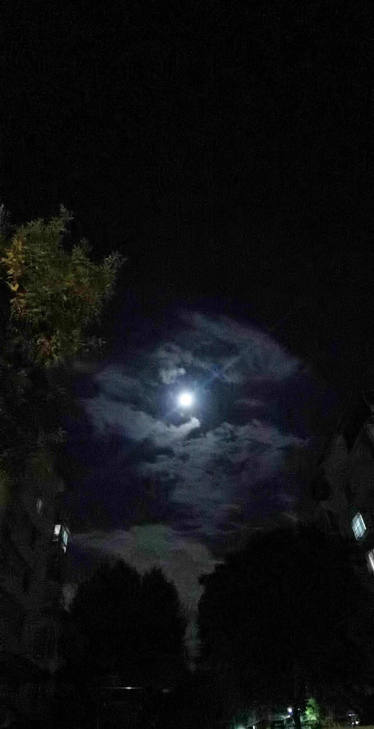 听说凌晨月全食,没等到月全食来临的时候我就先用手机拍了几张今晚的月亮,真圆啊!天也凉了!深夜外出,还是要穿件外套的。#自拍日全食#