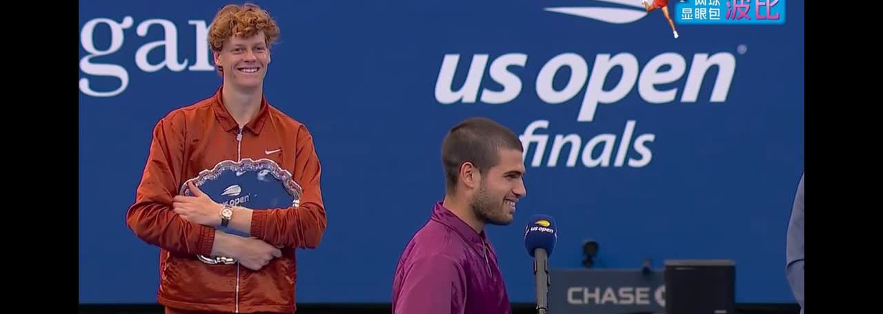 阿尔卡拉斯获奖感言来了! 他一上来,先是看着旁边拿着盘子的辛纳,向他表示感谢,同时他是发自内心的认为,今年辛纳的表现非常的出色,他十分低调的表示,自己有很多地方需要向辛纳学习! 今天晚上的比赛氛围让他感觉,就像在自己的家里一样轻松自在,因为在比赛之前,大家都很支持他,在比赛的过程中,他也发挥的比较稳定,在比赛结束了之后,对手对他表示除了足够的尊重,而且他们两个人彼此之间惺惺相惜! 所以在他看来,今天晚上就是一场天时地利人和,让他觉得很温暖的比赛!