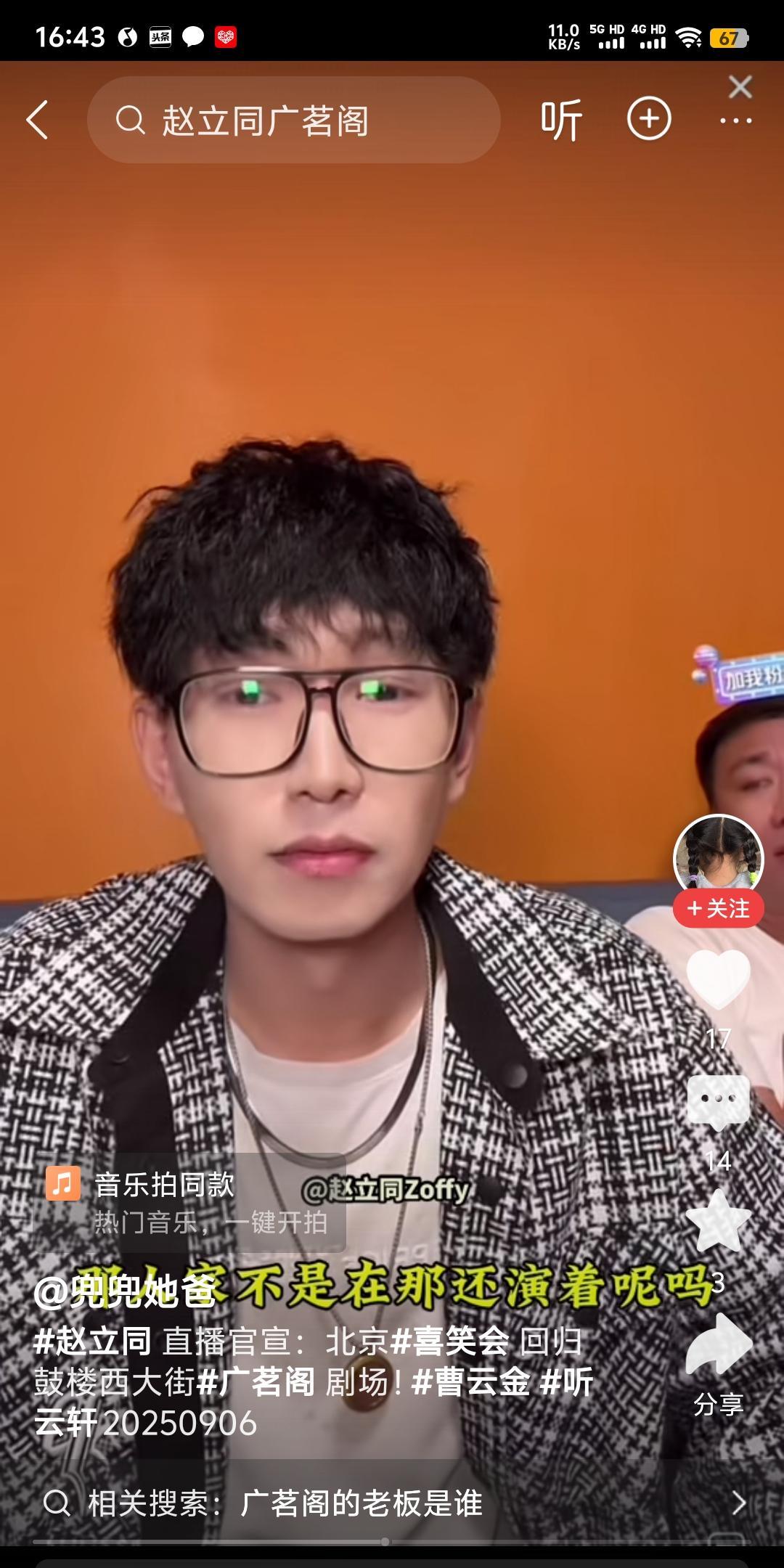 曹云金以后的听云轩要和别人共用一个园子吗? 刚才看到一个切片,是一位叫做赵立同的相声演员官宣他要回去广茗阁演出了。 我一开始有点恍惚,这人谁呀?推送给我干什么? 然后再想想,广茗阁?这不是听云轩小剧场的演出地点吗? 怎么?这小园子来流行“拼一拼”?两家相声剧社共用一个园子? “共享园子”? 不过这位赵立同还是北京喜笑会的班主,反正他这个视频成功算上蹭曹云金一波流量。 至少我知道他是谁了。不过他说的9.6号回归,我在网站上也搜不到他这个剧社的售票演出时间。 广茗阁也没找到有喜笑会的售票链接。这事到底是不是真的? 还来不及去细细找资料,不过好像之前看郑好直播的时候有人说听云轩黄了。 大概就是听说他要回去广茗阁演出,才会导致别人说听云轩又黄了。 其实我猜啊,要么就是这哥们在开玩笑,要么真的就是“共享小园子”了。 听云轩干晚场,喜笑会干下午场,互不干扰,互不相干,但是这样做的话。 曹云金很丢人,都混了3年直播了,一个小剧场都要跟人“共享”,那不得让人(我也笑一个)笑掉大牙啊? 截止到此时此刻,听云轩小剧场整个九月份都可以购票(都是晚场)。 这就不得不让我怀疑,喜笑会演下午场的可能性比较大了。 不过还是那句话,剧场又不是曹云金或是赵立同的,这两家都是租客,所以也掌控不了。 姑且不论这件事情的真假,就冲赵立同说这么一个事情。 咱们就可以先笑两天... 大家不要误会,我不是笑曹云金,我是笑这件事情本身就很好笑。 一家剧场如果分下午和晚场租给不同的两家相声社,那只能证明一件事情。 这两家相声社,都是花架子,无担两场演出的能力。 这事要是成真,那在相声史上,也可有一笔。(反喜笑会大大得利)