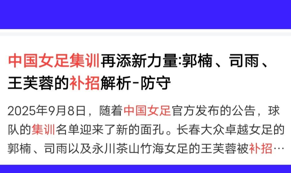 长春女足司雨、郭楠被莫名其妙补招进中国女足国家队,同时补招的还有丢球最多(32球