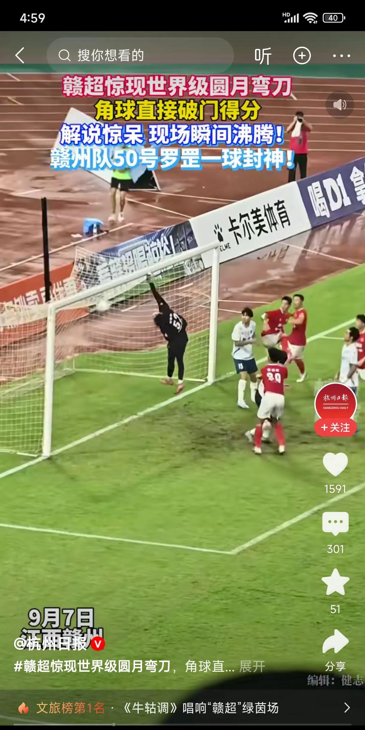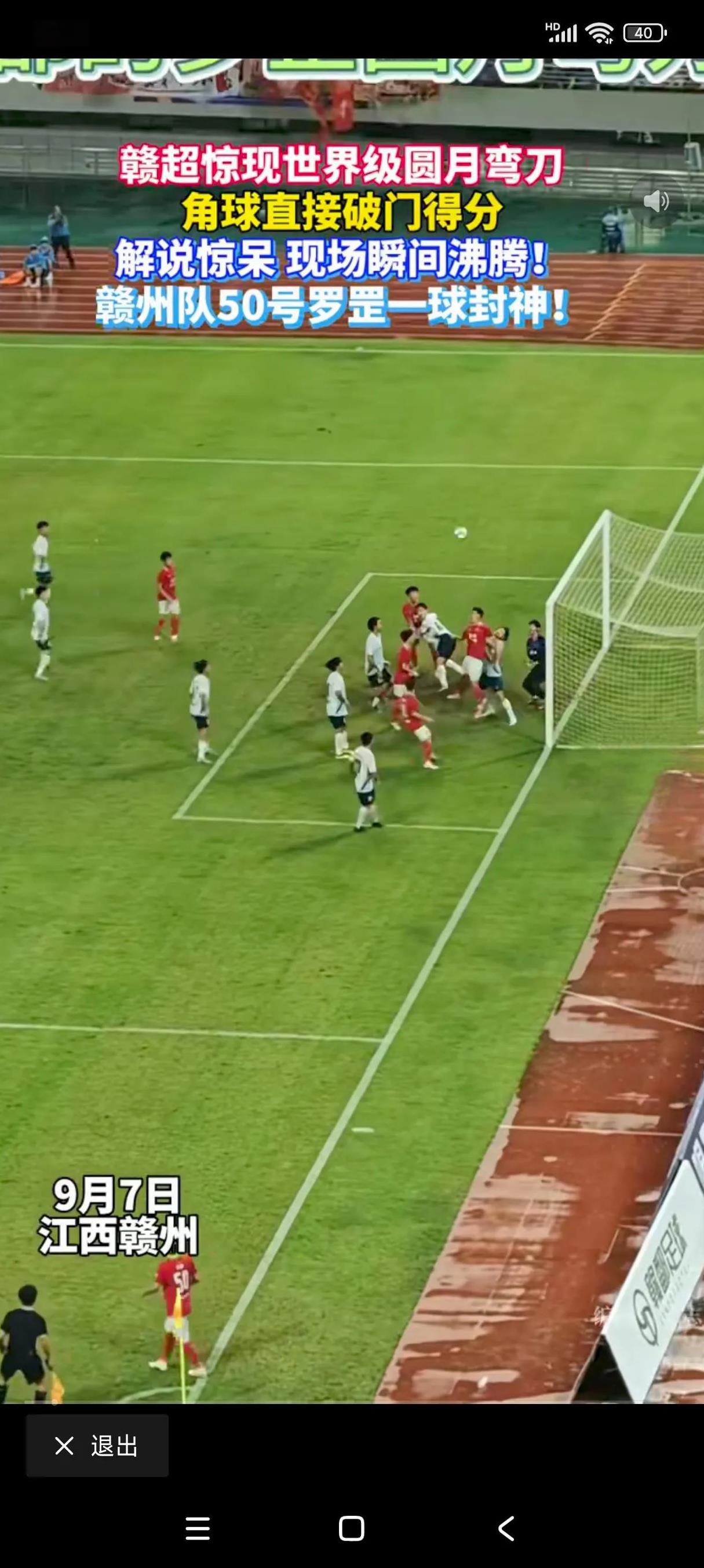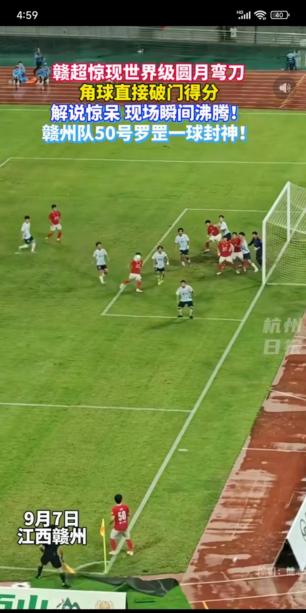 [祝福]央视会转播赣超的超级圆月弯刀吗?昨晚的赣超,赣州本土球员50号罗罡角球打进直接得分,没见他太大发力,大腿也没有大幅度的摆动,随着小腿高速一搓,皮球划过一道美妙的弧线,越过门将指间死角入网,GO~ll~~!替补席球员和现场全沸腾了,这是9块钱就能看到的进球吗?羡慕当天在场的所有人,期待央视转播赣超,这是业余联赛历史级别的进球!