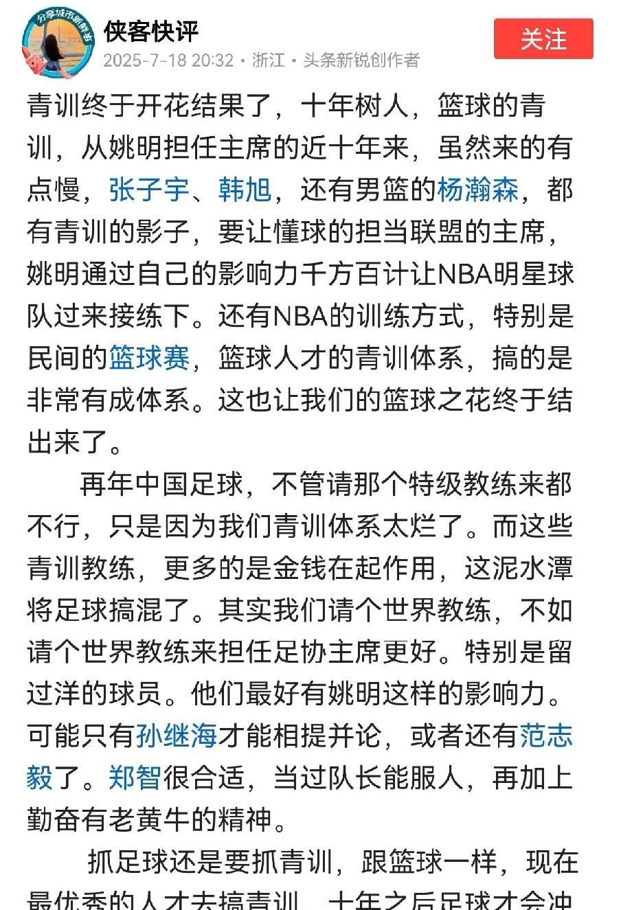 国青夺得亚军!为什么那么多人夸姚明? 中国男篮今年夏天拿了两个亚军,成年队亚洲杯击败新西兰,决赛输给澳大利亚夺亚军,一时间很多人在感谢姚明,当时很多人就说王俊杰是姚明搞青训的成果,昨天U16国青也是踩着新西兰晋级决赛,最终输给澳大利亚得到亚军,又有很多人出来感谢姚明。 真的不知道姚明做了什么?青训一直是CBA的传统,以前没有选秀各队球员不都是青训出来的吗?姚明、易建联、周琦这些NBA球员不都是青训出来的吗?再说了亚洲杯拿亚军不是应该的吗?去查查姚明上任之前哪届国青队在亚洲不是统治级别的,郭艾伦王哲林那批、赵继伟周琦那批,打亚青赛不都是全胜夺冠,这两批球员还打进了世青赛第七。 再说了,姚明最大的功劳就是选秀,青训跟他真的没有多大关系,他很努力、也付出了,但是有苦劳,并没有多大功劳,反而断送了NBL的前途,他一句不扩军导致NBL多支球队看不到希望直接解散,看看NBL以前接近20支球队,今年夏天快凑不齐八支球队了,还是特邀香港队参加才凑齐八支球队,姚明球员时代确实贡献很大,但是他并不适合管理,NBA模式不适合中国国情。