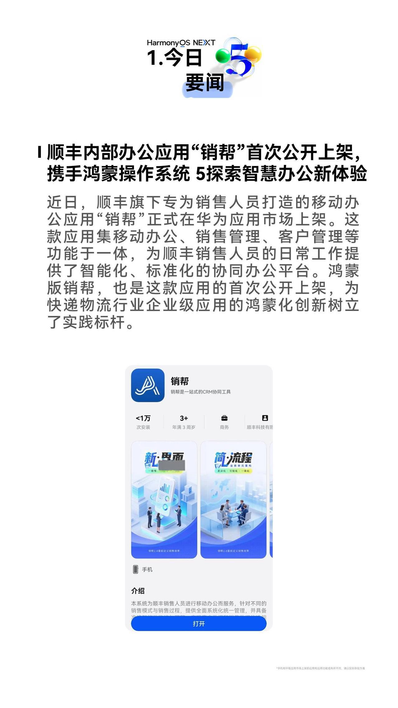 9月8日鸿蒙生态日日新PLOG:顺丰内部办公应用“销帮”首次公开上架,携手鸿蒙操