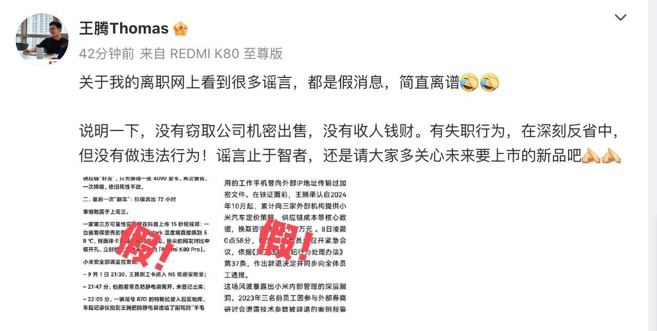 #王腾称没有窃取公司机密出售# 昨晚的瓜到现在多条热搜,到底咋回事啊?王腾说,没有窃取公司机密出售,没有收人钱财。有失职行为,在深刻反省中,但没有做违法行为
