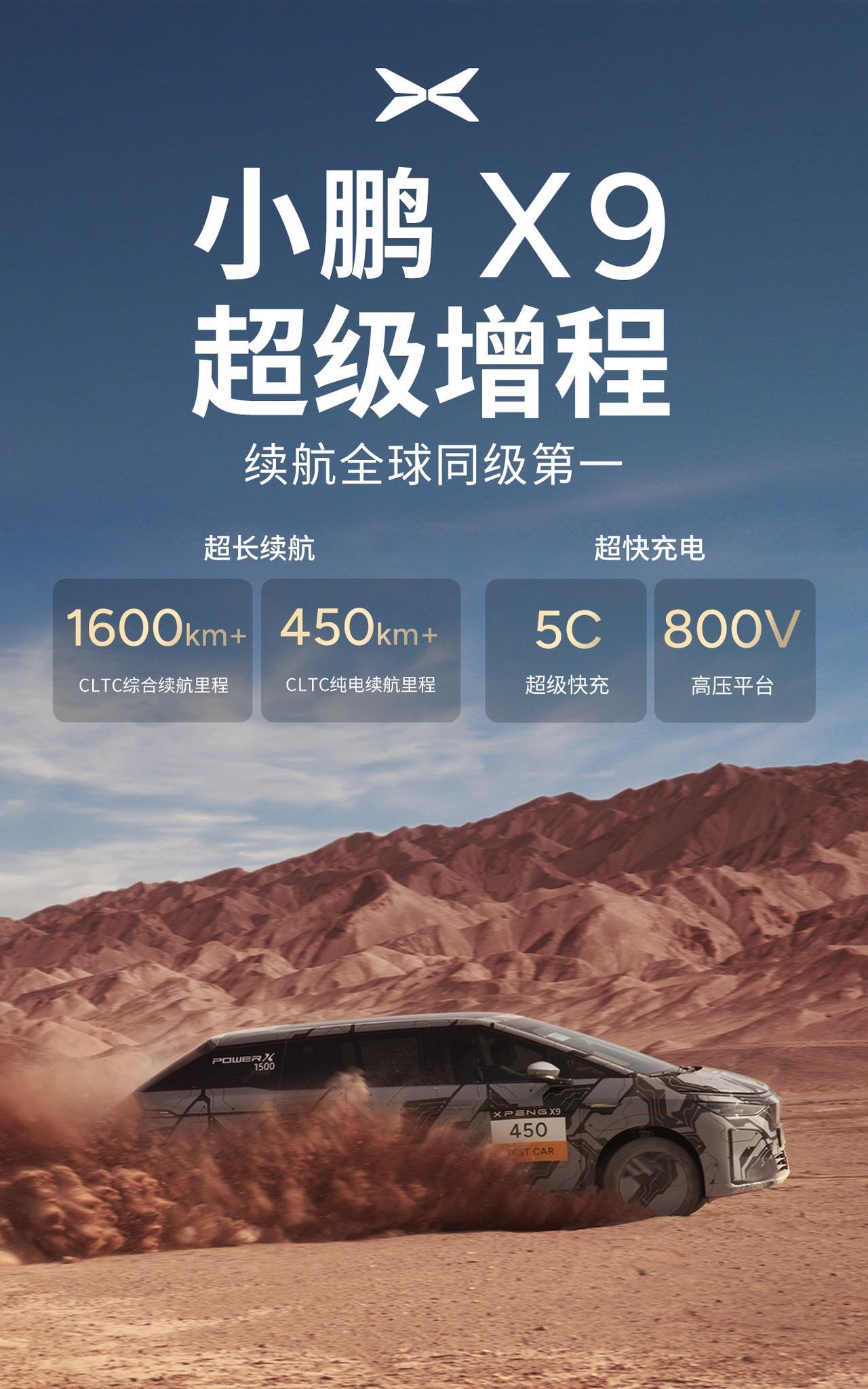 #小鹏X9超级增程续航公布同级全球第一#800V+5C超充+450。上