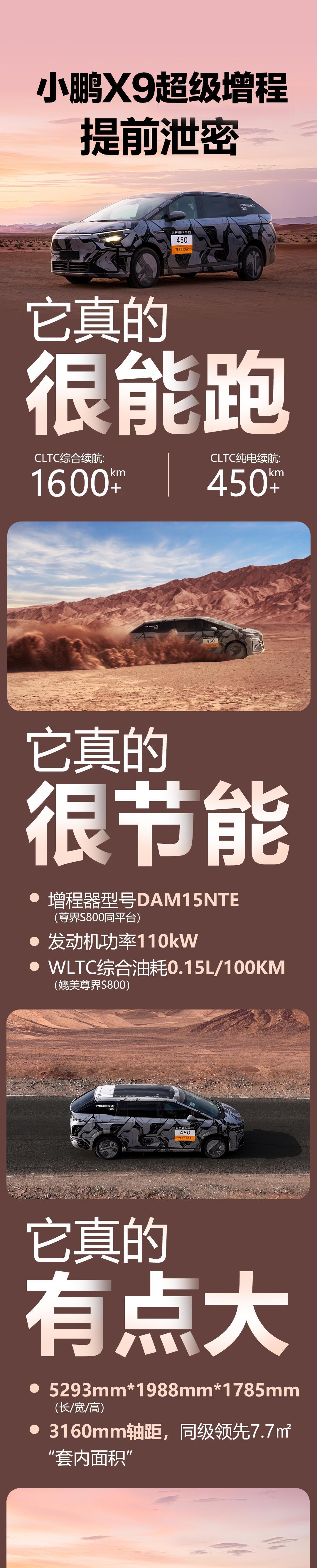 #小鹏X9超级增程续航公布同级全球第一# 800V + 5C超充 + 450。上劲儿了啊!小鹏超级增程家族首款车型,X9超级增程预热开始了。63.3度电池,纯电续航450公里,综合续航超1600公里,5C,大七座。以鹏子目前打法:必须有图灵吧?必须价格低吧?【来自懂车帝车友圈】