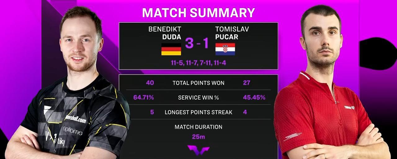 雨果、迪亚兹、杜达、布鲁纳晋级16强,WTT冠军赛澳门站丨9月9日上午场次外协会球员比赛战报: WTT冠军赛澳门站丨今天上午11:00开打,外协会球员间比赛也很多精彩场面,竞争16强席位! 世界冠军雨果横扫韩国选手安宰贤,比赛精彩激烈,每局比分都很接近,但雨果把握关键分能力更强,连胜三局获得16强席位! 迪亚兹先输一局,又在1:2落后的情况下逆转欧洲冠军波尔卡诺娃打进女单16强。 贝内迪克特·杜达对阵托米斯拉夫·普卡,杜达先胜两局,第三局松懈输掉,第四局重新调整状态顺利拿下晋级! 女单1/16决赛巴西名将高桥·布鲁娜逆转法国选手袁嘉楠晋级16强,本场比赛双方都是采用高抛发球,袁嘉楠的发球稳定性不佳而输掉比赛! 赛果如下: (1)男单1/16决赛 (3)男单1/16决赛 (4)女单1/16决赛