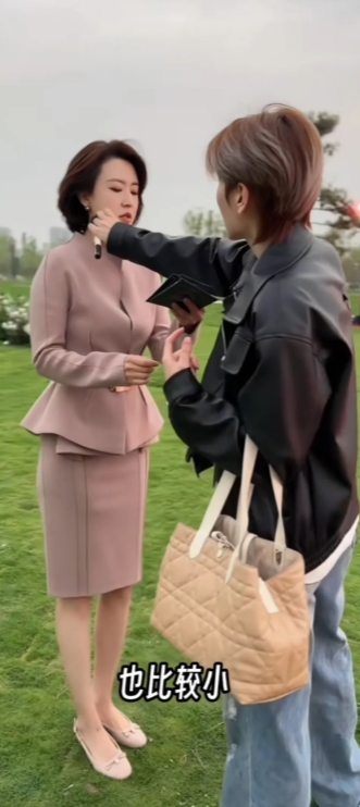 在外景拍摄间隙,张蕾会及时补妆,涂抹个防晒,不至于让皮肤晒黑,长斑。
