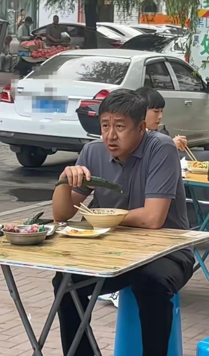 大明星也吃路边摊,你看他也太低调了吧,没有成群结队的保安围着,也没有随行的工作人员,就像平常人一样,挺有烟火气息的,一个人在那吃黄瓜,等着上菜。