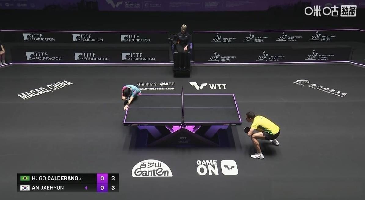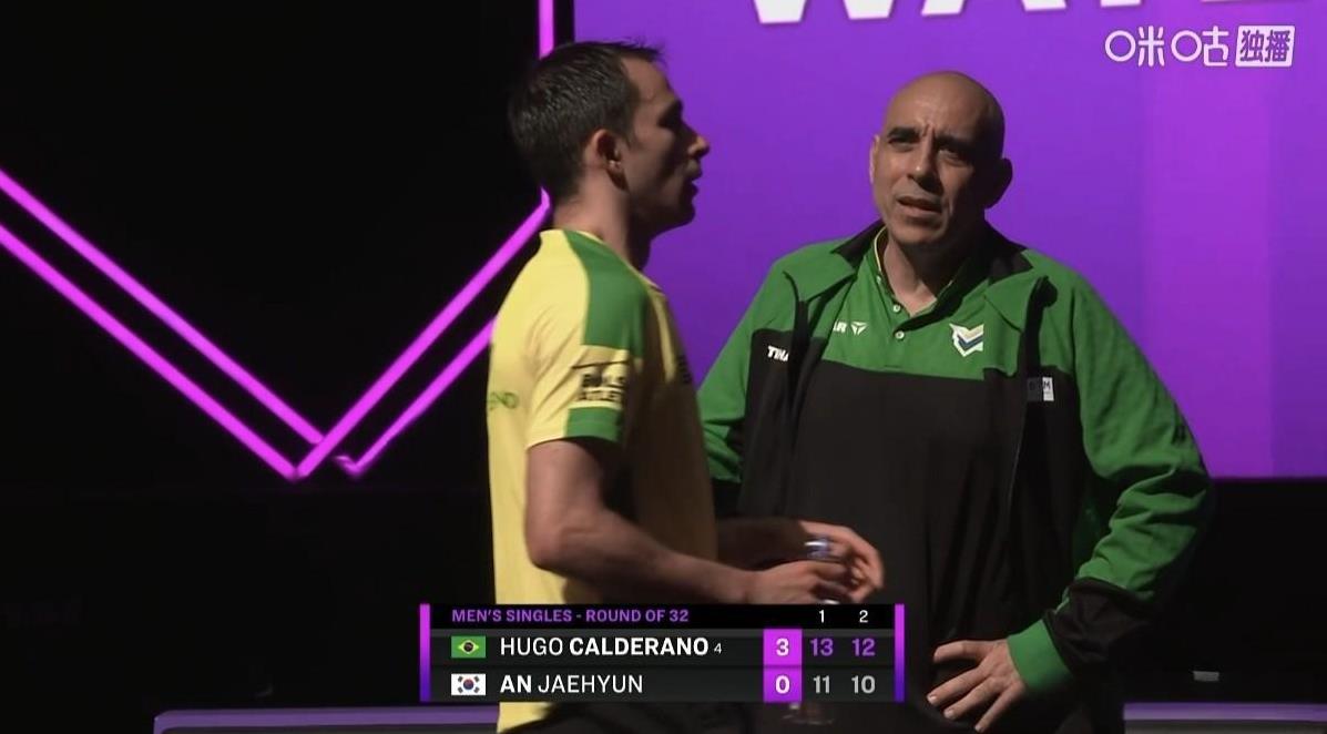 新科世界冠军完胜韩国新晋一哥,挺进男单16强! 今天中午,WTT澳门冠军赛男单1/16决赛,新科世界冠军巴西的雨果·卡尔德拉诺对阵韩国新一哥安宰贤。 雨果现排名世界第4,安宰贤排名世界第14。近期双方都是状态火热。 国际赛场上两人有6次交手,雨果保持全胜。 3:0(13:11、12:10、11:8),这场比赛雨果赢的并不轻松,前两局都是安宰贤在大比分领先(8:4、8:1)的情况下被翻盘的,可以说是雨果险胜安宰贤。 安宰贤输的实在可惜了! 恭喜雨果晋级男单16强!