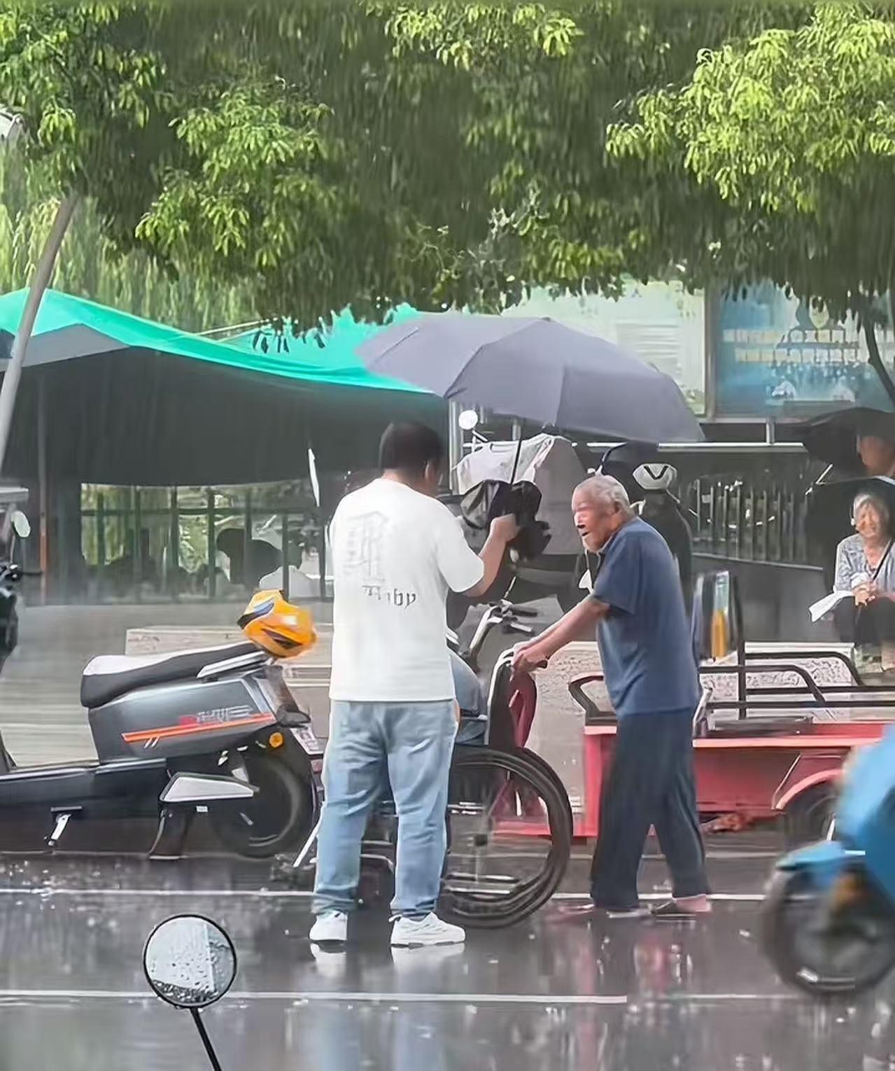 “火到人民日报!”暴雨突下,一个老爷爷推着老伴淋雨行走。这时,一个男子开车路上,热心送上一把伞。可是老爷爷拿到伞后的举动,让人眼眶一下子就湿了!网友:一个短短几十秒的视频,却深深感动了我两次! (来源:人民日报) 老奶奶行动不便,只能坐在轮椅上出门。这天,老爷爷推着她散步,哪曾想到遇到了大暴雨。两人瞬间被淋成了落汤鸡,却只能在这狂风暴雨中,艰难地朝着家的方向挪动。 就在这时,男子开车路过,他看到两位老人在暴雨中如此狼狈,心中一阵揪痛,担心老人淋雨会感冒。 而他车里正好放着两把伞,没有丝毫犹豫,他迅速拿着伞下车。 “老爷爷,这雨伞送给你们了,这雨太大了……”男子将伞递到老爷爷手中。 “谢谢,谢谢!”老爷爷接过雨伞,连声感谢,那满是皱纹的脸上,写满了感激与温暖。 男子送完伞,转身回到了车上。可是,令人意想不到的一幕发生了。老爷爷并没有把伞撑在自己头顶,而是将整个伞都撑到了老奶奶身上。他自己则完全暴露在雨中…… 一把伞,撑两个人,两个人都会淋湿。所以,老爷爷毫不犹豫地选择全给老奶奶撑。 而这一幕,恰好被一位路过的网友用手机记录了下来。画面中,老爷爷在雨中淋得浑身湿透,那把伞却稳稳地遮在老奶奶头顶,感动了无数人。 此事引发了热议,有网友说,看到雨伞全部遮在了老奶奶身上,我的心里在震颤!不羡慕热恋情侣,不羡慕新婚夫妻,唯独羡慕这种与子偕老的感情! 也有网友说,天哪,怎么可以这么感动!我以为有人送伞是主题,没想到送完伞爷爷全部给了奶奶才是最后的主题! 还有网友说,我发现长寿的男人都是爱老婆的,基本都是!爷爷用行动诠释了什么是真正的爱! 雨里的伞全偏向奶奶,爷爷淋着的是雨,护着的是一辈子的情。好心人的伞,如同冬日里的暖阳,温暖了这条被雨水浸湿的路;而老两口的爱,恰似春日里的微风,轻轻拂过每个人的心田,让我们的心也跟着变得温暖。