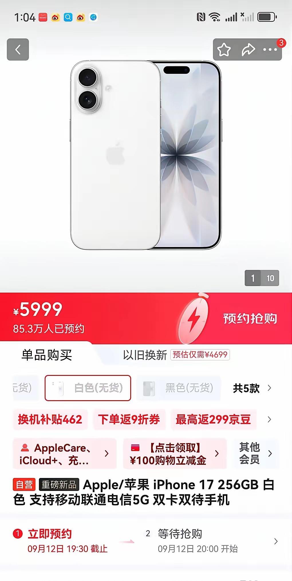 没想到,用了几年的手机还能以旧换新,能抵1000多块的购物机费用,东哥的这波福利力度又不小。 iPhone年年出新机,每次价格都不低。喜欢归喜欢,掏钱的时候真心疼啊。 可这次买iPhone17就不同了,京东有个购机津贴福利,最高能报1万元现金。这1万块钱是不是抵得上一个月的工资呢! 还有最高24期的免息,每个月只还几百块钱,这账怎么算怎么划算。 不仅如此,参与活动还能抽新机,运气好的话,一分钱不花就能把手机拿回家。 操作也不复杂,打开京东APP搜“购机津贴”,30秒钟领额度,买完手机上传订单就能报销,真是太方便了。 想换手机的,喜欢苹果手机的,这波福利千万不要错过,名额有限,先到先得。 #iPhone 17# #苹果发布会# #京东金融购机津贴# #白条免息#