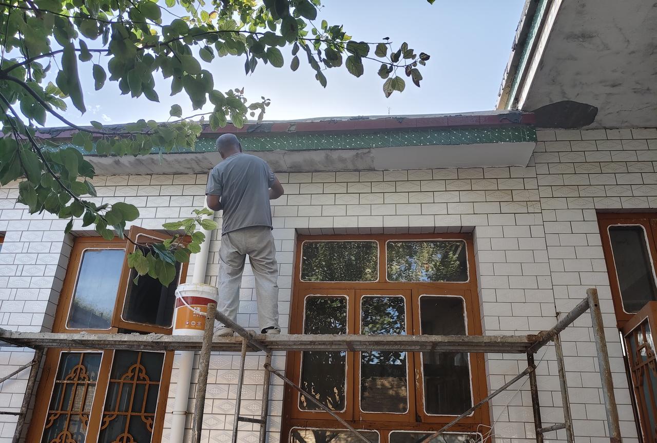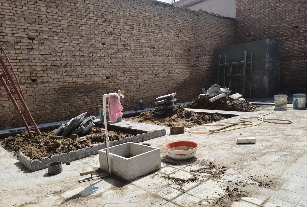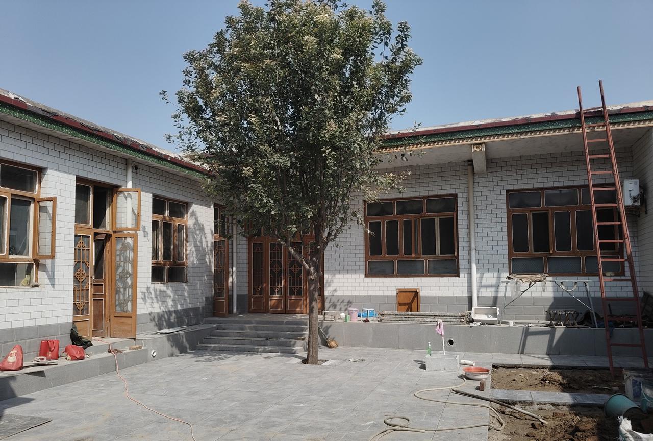 院内地面铺砖完毕。月台下、街门筒下开始涂白灰。 房顶上北京大瓦业务谈妥。商家看了现场,明早六点开始施工,预计中午施工完毕。 剩余沙子,大舅拉走。他也准备院落贴砖。 下一步,接线、吊顶,卫生间坐便池安装,洗手池安装,整体厨房设计。