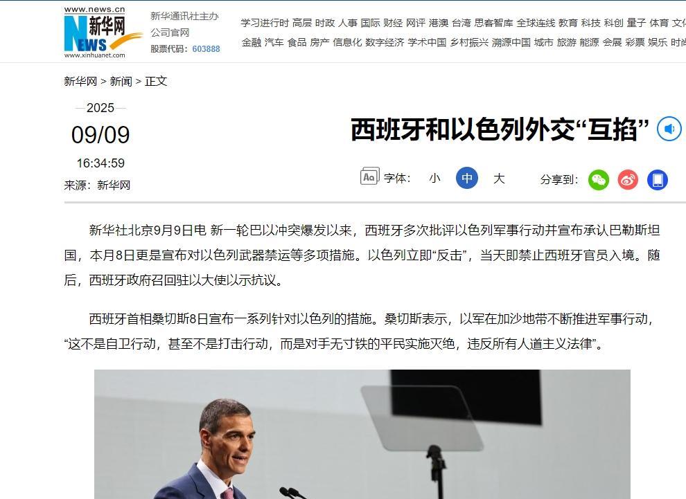 为了阻止以色列继续侵占巴勒斯坦,西班牙决定从9月8日起,所有为以色列运输武器,燃料,甚至是食品的船只,飞机一律不可通过西班牙的领空和港口。 桑切斯站出来说,这么做是为了阻止以色列在加沙的“种族灭绝行为”,要给巴勒斯坦撑腰,这话听着挺硬气,直指以色列在加沙的军事行动。 西班牙早就不是第一次对以色列摆出强硬姿态,去年5月,他们就跟挪威、爱尔兰一块正式承认了巴勒斯坦国,态度明确得很。 这次更狠,直接把禁运范围扩大到武器、燃料,连食品都不放过,等于掐断了以色列通过西班牙领土的补给线,这在西方国家里,绝对算得上是对以色列的公开叫板。 桑切斯曾公开吐槽过,欧洲在加沙问题上的反应“彻底失败”,让西方的国际形象受损,他想通过这波操作,把西班牙塑造成中东和平的推手,提升自己在国际舞台上的分量。 桑切斯的左翼政府,面对国内更激进派别的压力,这些人早就嚷着要对以色列来硬的,这次禁运,既是给国内选民交差,也是想在国际上带个头,试试能不能拉着其他欧洲国家一起重新审视对以色列的态度。 北约是个以集体防御为核心的军事联盟,成员国在对以色列的政策上,通常都跟着美国、德国这些大佬走,基本是个铁板一块。 西班牙这回直接跳出来,等于在北约内部扔了个分裂的种子,有人可能会说,土耳其不也老批评以色列吗?但土耳其跟西班牙不一样。 土耳其在北约里更像是看门户的,地缘位置特殊,欧洲对它的动作向来不怎么放心上,西班牙可是北约的正牌成员,它这么干,影响力完全不是一个量级。 桑切斯的决定,很可能给其他对以色列不满的欧洲国家壮胆,比如法国,最近马克龙也喊话要停运武器给以色列用在加沙,欧洲内部对以色列的政策,分歧越来越明显。 加沙的人道主义危机,确实是这波决定的直接导火索,桑切斯多次公开批评以色列的军事行动“太过分”,破坏了国际人道主义法,威胁了中东甚至全球的稳定。 这种立场在国际上不是孤立的,联合国人权理事会去年4月就通过决议,谴责以色列在加沙的行动,还呼吁武器禁运。 西班牙这波操作算是响应了国际社会的呼声,同时也给美国主导的西方阵营来了个当头棒喝,质疑他们的“双重标准”。 西班牙跟阿拉伯世界有历史渊源,文化经济联系都挺深,这种背景让它在巴以问题上更倾向于平衡立场。 这次禁运不仅是给巴勒斯坦站台,也是向阿拉伯国家递了个友好的橄榄枝,桑切斯可能还想借此机会,为西班牙争取更大的中东外交空间,甚至推动欧盟在巴勒斯坦问题上更统一的政策。 毕竟,承认巴勒斯坦国、对以色列施压,这些都是西班牙近几年反复强调的“欧洲地缘政治利益”。 信息来源:新华网 西班牙和以色列外交“互掐”