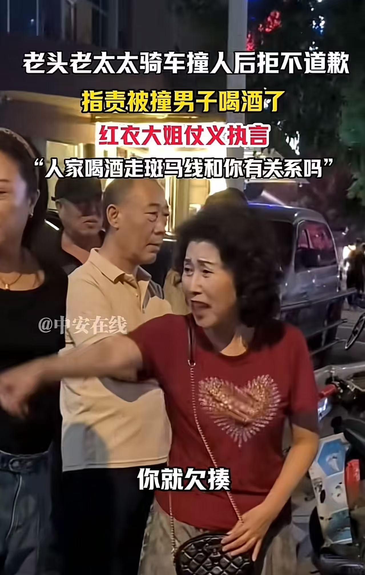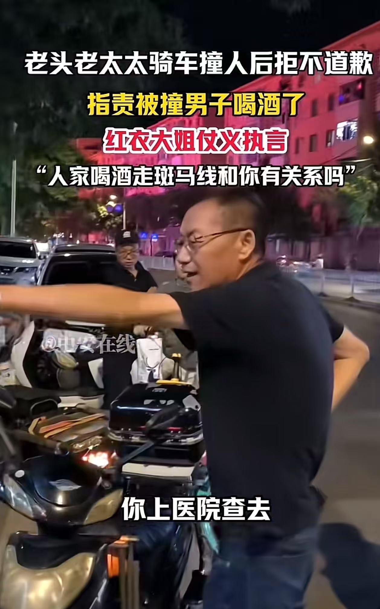 “在东北真碰不了瓷,有事大家真上……”辽宁沈阳,老头老太太骑电动车撞了人,不仅不道歉,反而指责被撞的男子喝酒了!围观的红衣大姐看不下去,仗义执言:“人家喝酒走斑马线和你有关系吗?你撞了人还逼逼啥?” (来源:中安在线) 男子喝了点小酒,不过他知道喝酒后绝不能开车,于是就选择走路出门。 他规规矩矩地走在斑马线上,打算横穿马路。可谁能想到,祸从天降,一对骑着电动车的老头老太太,“哐当”一下就撞了上来。 按说,撞了人总得道个歉吧?可这俩老人倒好,不仅不道歉,反而恶人先告状,指着被撞男子的鼻子就指责起来:“你这人咋回事儿?走路不长眼睛?!” 男子当时就懵了,自己好好走在斑马线上,被撞了不说,还反被倒打一耙,看这架势是要讹自己啊? 他赶紧理论道:“你们可别讹人,大家都看得清清楚楚,是你们骑车撞的我!” 可那老太太哪肯罢休,直接往地上一躺,嘴里还骂骂咧咧:“哎哟,你喝酒走路,还摇摇晃晃我们才撞上的。我刚脑出血从医院出来,你撞伤我了。你要是不信,就上医院查去!” 男子又好气又好笑,自己喝酒走路,又不是喝酒开车,这根本不违法啊! 于是他反驳道:“我喝酒走斑马线怎么了?你骑车没戴头盔,还带人,这能行吗?” 就在这时,人群中一位穿着红衣的大姐看不下去了。这位大姐那可是个直性子,眼里容不得半点沙子。 她双手一叉腰,扯着嗓子就开腔了:“人家喝酒走斑马线,跟你们有啥关系?你撞了人还在这儿叽叽歪歪啥?斑马线本来就是让行人走的,你得避让行人,这是最基本的规矩!你别在这儿闹腾了,这么多双眼睛都盯着呢,我们都看不下去了!你还在这儿逼逼叨叨,简直就是欠揍!” 这一幕被人拍下发到网上,引发了热议。有网友说,在我们东北真碰不了瓷,真不惯着,吃瓜群众都是判官! 也有网友说,我来翻译下,大妈的意思是,撞是撞他了,但是我闻到他身上有酒味,他喝酒走路了,有点摇摇晃晃的,涉嫌醉走,赶紧让他给我送医院去,我要求赔偿,我这脑出血,刚出医院。 还有网友说,喝酒还不能上街了啊?老头老太太什么意思?喝酒就活该被撞吗?还斑马线上撞的人啊!怪不得脑出血住院,太缺德! 不得不说,这位红衣大姐真是东北街头的一股“侠气”。在如今这个社会,有些人总是想方设法地占别人便宜,遇到事儿就耍赖撒泼。就像这对老头老太太,撞了人不反思自己的错误,反而想通过讹人来获取利益,这种行为实在是让人不齿。 而红衣大姐的出现,就像一道正义的光,照亮了那些被歪理邪说掩盖的角落。 我们不能让那些不讲理、爱碰瓷的人得逞。如果每个人都像这对老人一样,无视规则、颠倒黑白,那社会还不乱了套? 所以,我们必须为像红衣大姐这样敢于仗义执言的人点赞,是他们让正义得以伸张,让社会充满了正能量! 那些想靠歪门邪道获利的人,还是趁早收起你们的坏心思吧,因为正义或许会迟到,但永远不会缺席!