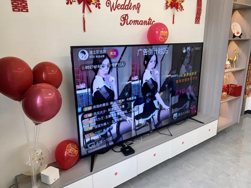 小孩在看动画片,突然弹出来的广告,也不知道谁发明的盒子。