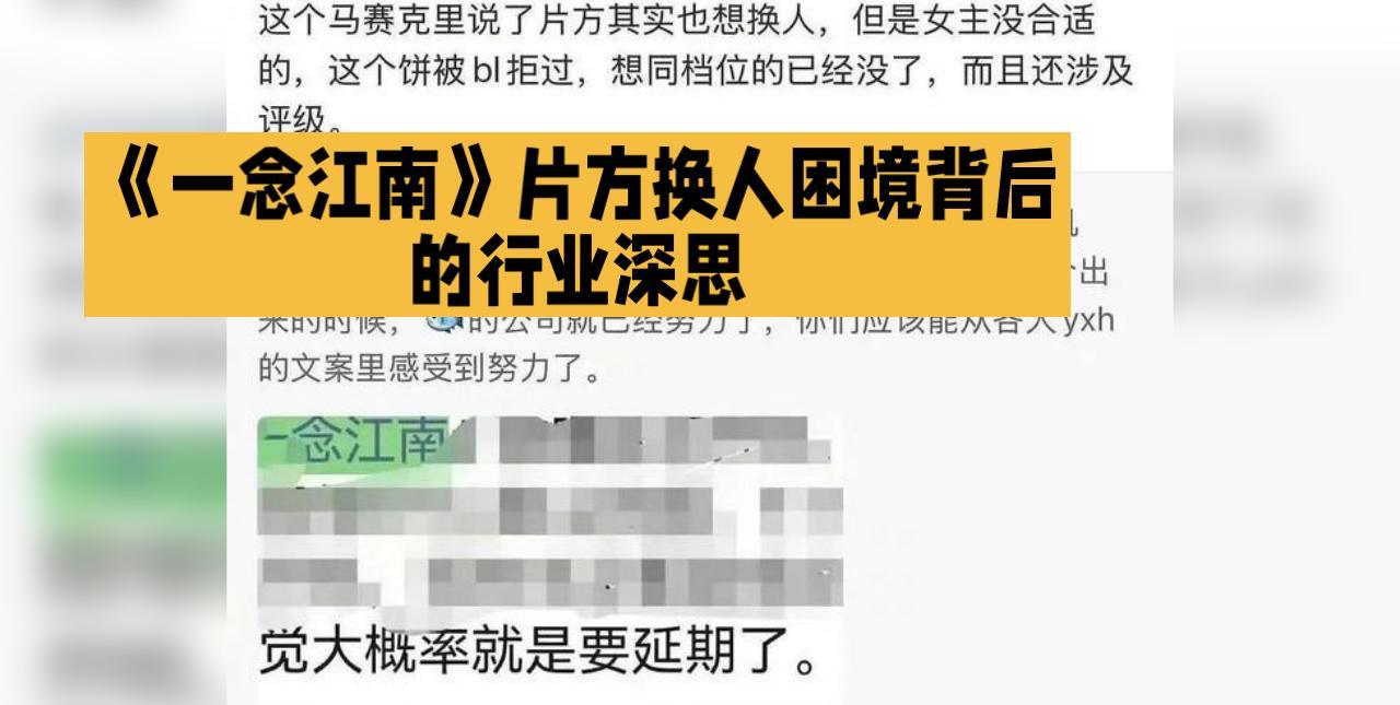《惊!《一念江南》片方欲换女主,目标转移成谜,老潘、上海超导啥情况?“一贪江西”