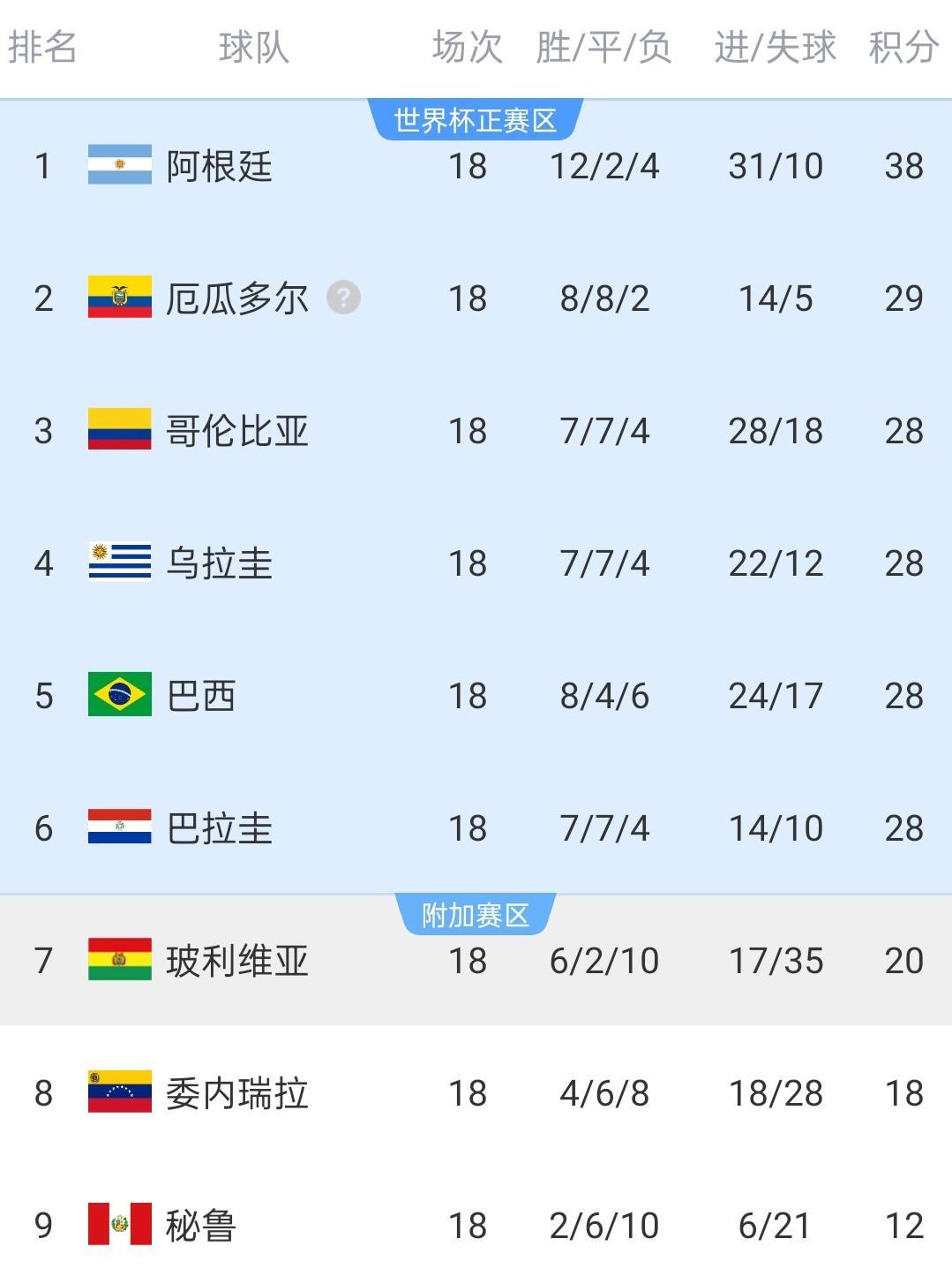 南美无弱旅,都有点旗鼓相当的感觉。 就拿阿根廷来说世预赛18场比赛,12胜2平4