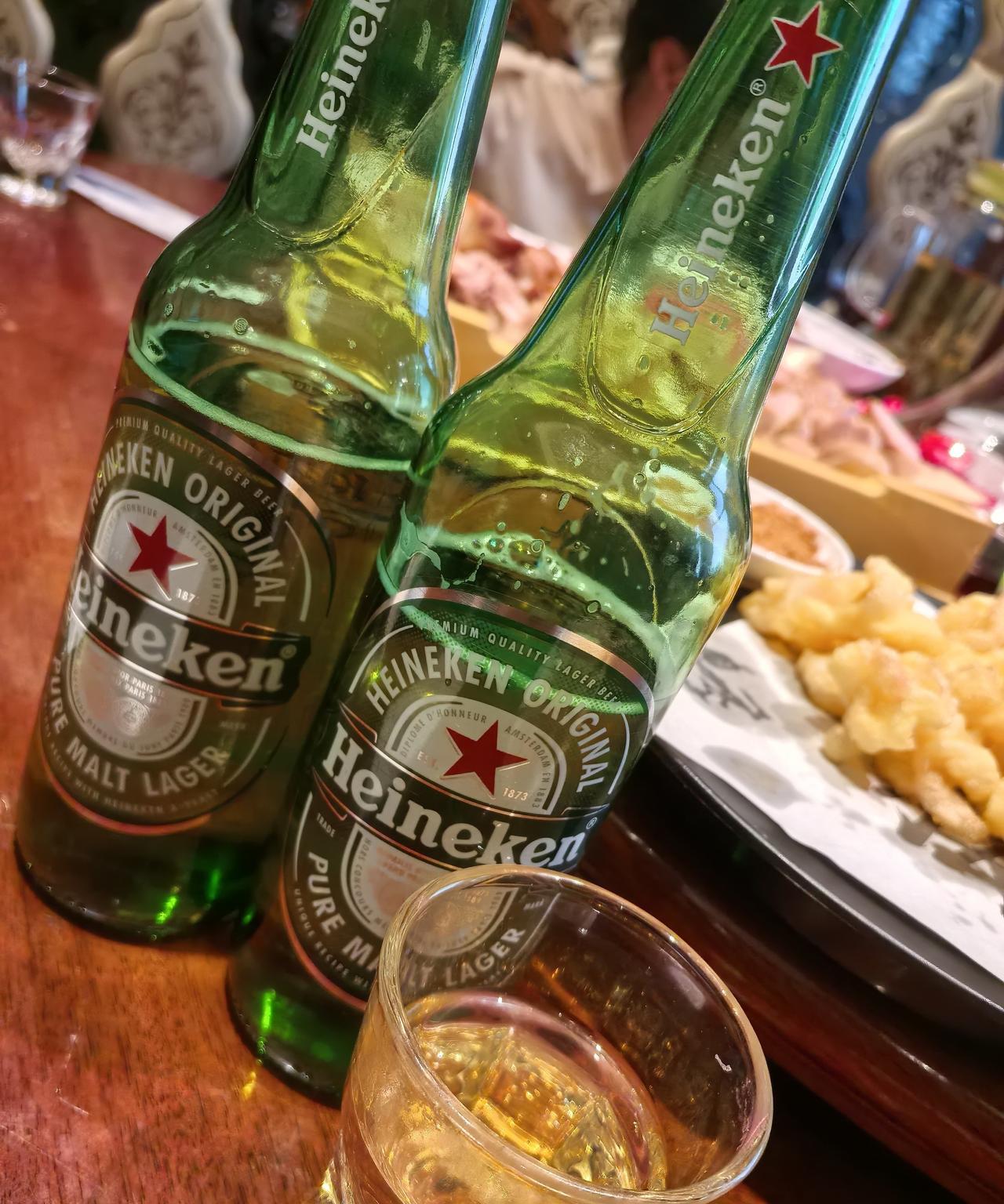 我们哈尔滨人出去吃饭要啤酒,习惯说:凉的常温,一半一半。就是一箱啤酒,要一半冰镇的,一半常温的。 基本上每个人都同时拿两瓶酒,左右开弓,凉的和常温兑着喝。 太凉的会刺激胃,太温吞的还不爽口。两瓶兑着喝,温度正好! 不知道在你们家乡,有没有这个习惯? 昨天好朋友一起过教师节,又发现了一个好吃的馆子,双新老菜馆,在哈尔滨群力丽江路。以前新阳路有一个店,年头也挺长了,没想到后来又开在这里了。 装修非常古朴典雅,每一道菜都很好吃。熏酱拼盘、软炸虾仁、小酥肉、荷塘小炒、麻酱拉皮、酱焖海杂鱼、毛血旺、芹菜花生米。最爱这个熏酱拼盘,毛血旺做的也相当地道。 又喝的喜力,十几块钱价位的酒,喜力现在最火。这酒虽然好喝,但劲儿大。以前喝哈啤纯生或者百威红瓶基本没喝多过,喜力喝四五瓶我就迷糊。以后尽量少喝点! #哈尔滨餐馆# #哈尔滨必吃餐厅# #群力餐饮#