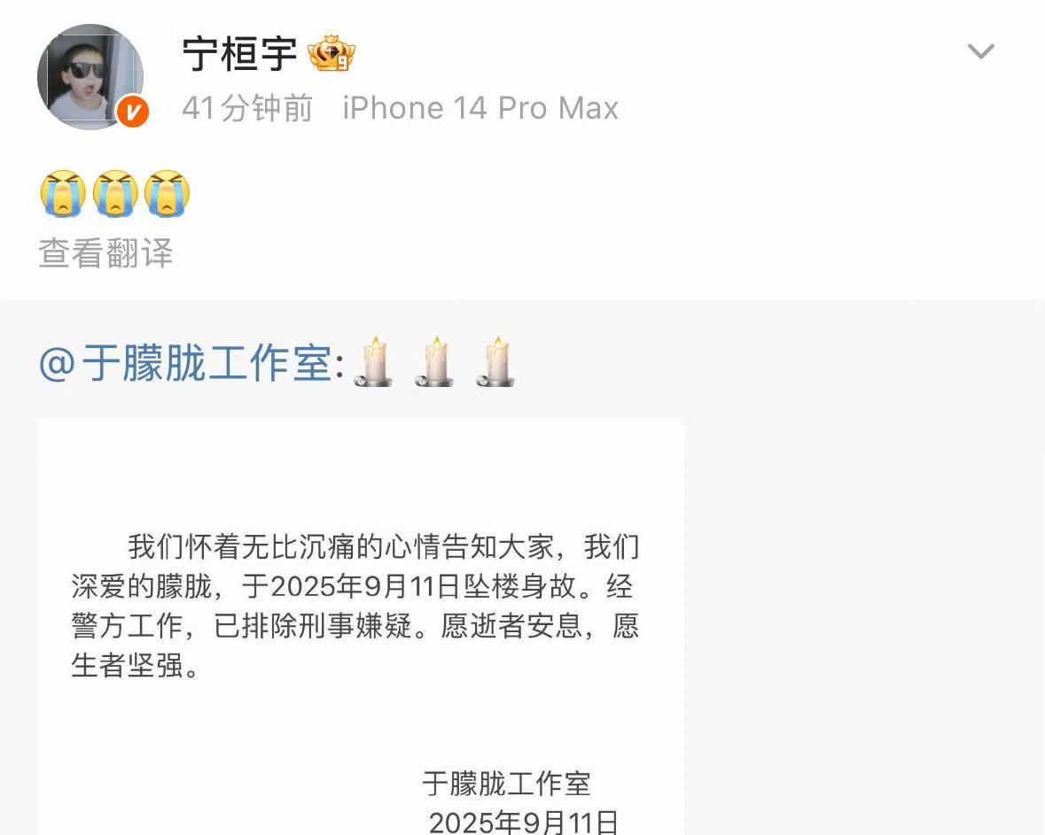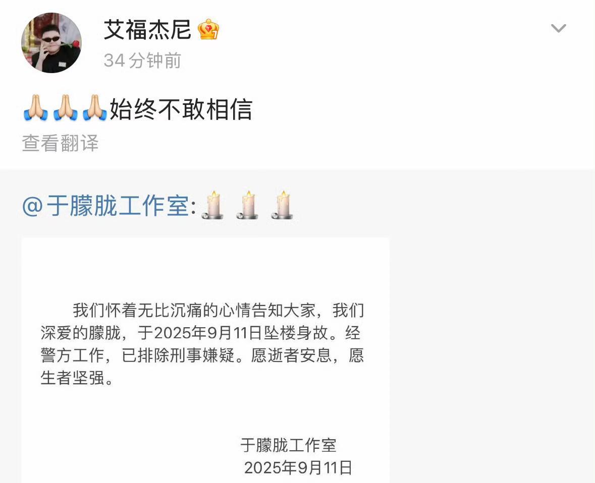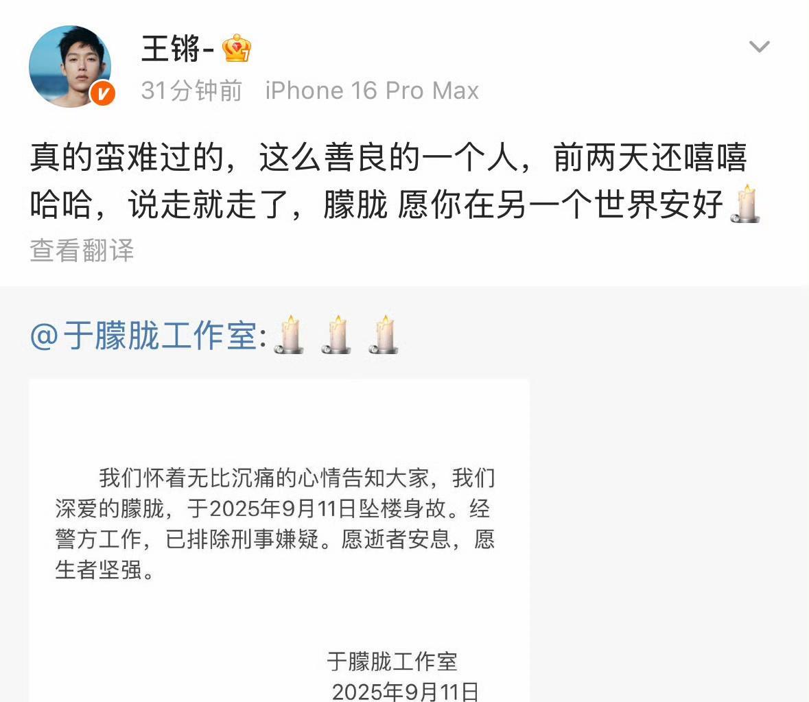 娱乐圈众星发文悼念于朦胧…… 大家印象里的于朦胧一直是温暖,阳光,善良的一个人。