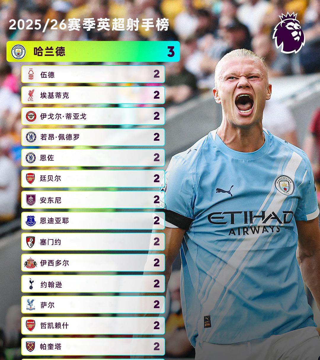 绿茵大数据! ★英超新赛季开踢3轮,射手榜第一的位置上又出现了一个熟悉的名字——
