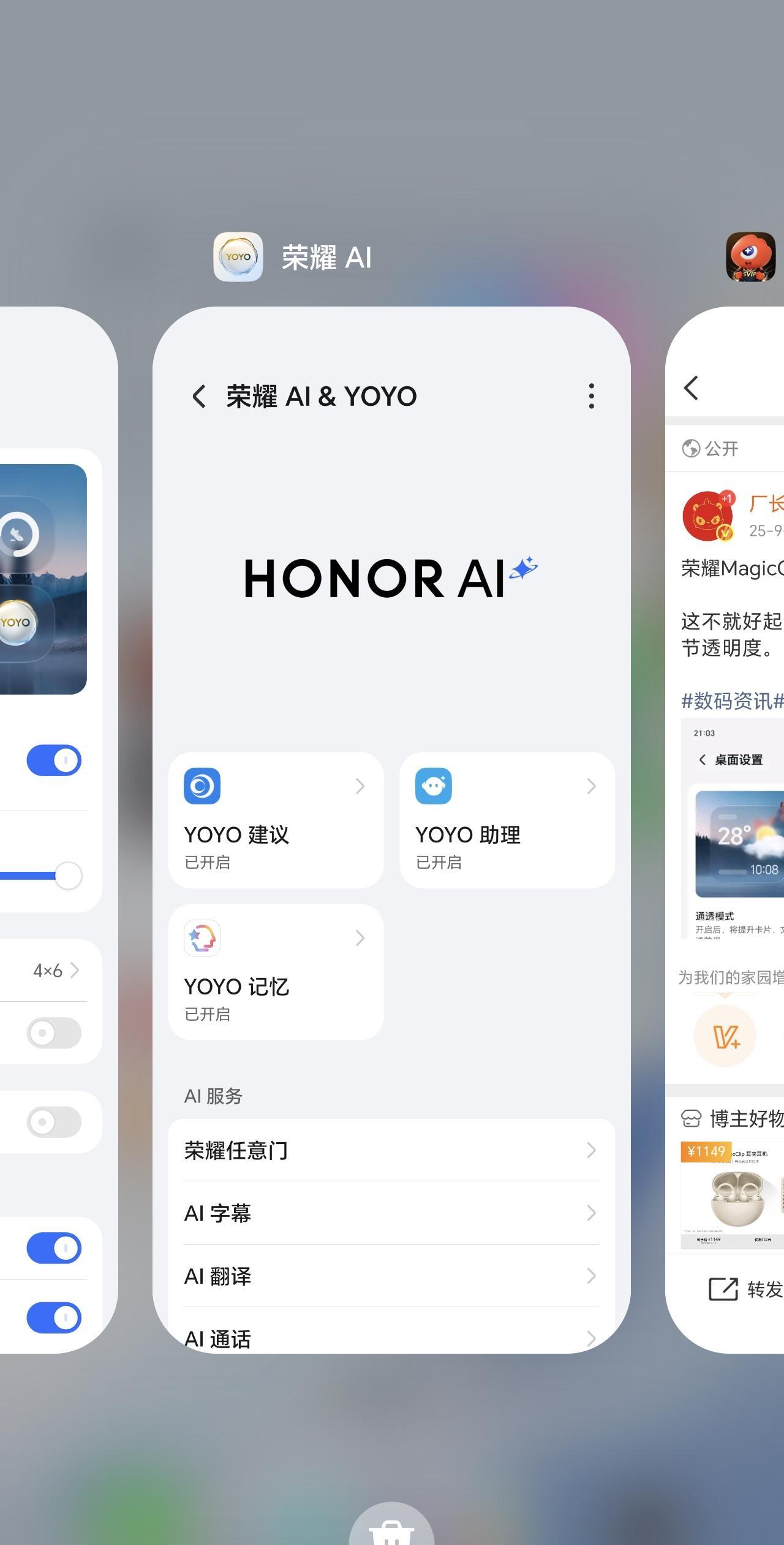 荣耀Magic7系列优先更新的MagicOS10.0后台多任务堆叠 给你们截