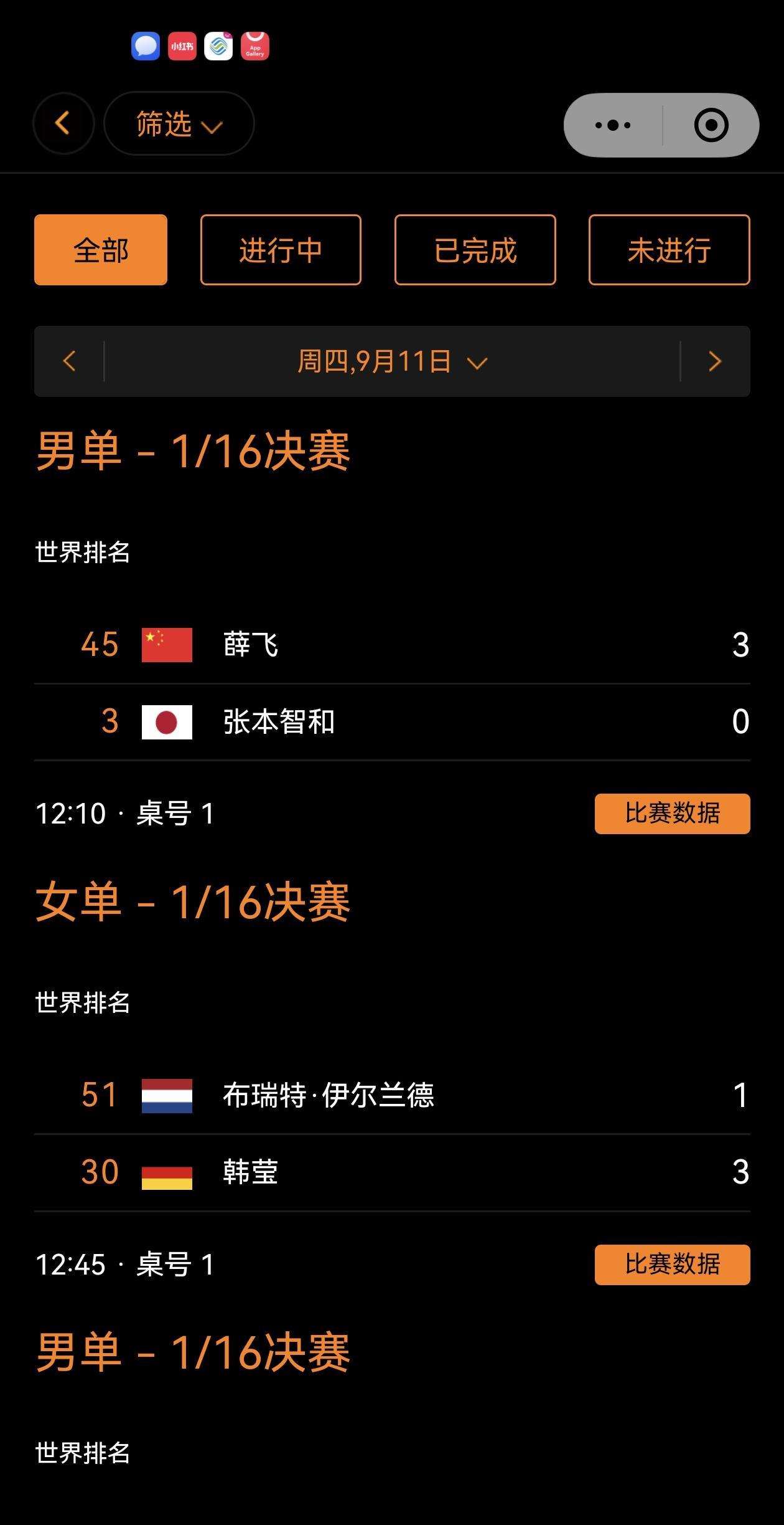 WTT澳门冠军赛2025(9.9-14):9.11午场,1/16赛收官捷报:出场的国乒三位,全部晋级16抢强!薛飞英勇奋战3:0拆了小摩托张本智和,日本男乒全军覆没!陈垣宇顽强拼搏3:2埃及阿萨尔;陈熠3:1韩国金娜英!#WTT澳门冠军赛#