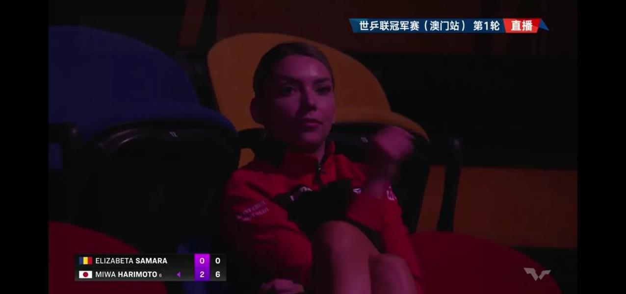 张本美和和萨马拉比赛的第三局比分0:6时镜头一转给到了观赛的斯佐科斯,正在悠闲的看比赛,赢了汉娜高达的她看着心情相当美丽。她关注的人是萨马拉。