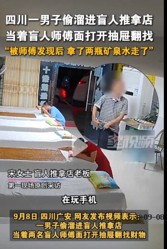 四川发生了一起让人哭笑不得的盗窃案。一名男子一晚上连续两次走进盲人按摩院,确认按