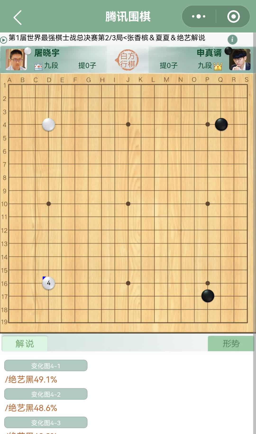 今天2025年9月11日屠晓宇九段与韩国棋手申真谞九段争夺世界围棋最强棋士战第二