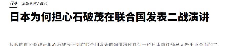 没有后顾之忧的石破茂彻底放飞自我,自民党怕他当着全世界的面,代表日本对中国公开道歉? 自民党将提前举行总裁选举,无官一身轻的石破茂彻底放飞自我。有消息称, 他计划在联合国大会上,分享自己对二战的见解,相当于是要发表推迟许久的“战后讲话”,自民党的保守派,很怕他当着全世界的面,以前所未有的力度检讨日本的战争罪行,甚至是对中国公开道歉。 1个月前,日本战败80周年的时候,石破内阁就讨论过要不要发表战后谈话,但最后没有统一意见,都觉得安倍十年前的讲话,已经足够了。当然,从我们的视角来看,安倍当初的讲话,是很明显的偷换概念,没有明确反思罪行。 而石破茂,他的二战史观,在自民党内不受追捧,反而很受左翼势力的欢迎。当时因为种种顾虑,石破茂没有发表战后谈话,现在他没有了后顾之忧,很多话反而能说得出口。
