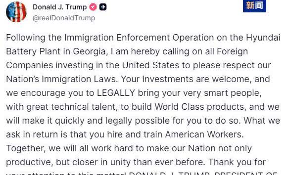 “不要太难过” 自现代汽车在美工厂工人抓捕之后,韩国媒体一片哗然,纷纷指责美国不地道,不讲信用——明明是谈好了投资建厂下的后续工作。 这些留在美国的工人大都是现代汽车总部派遣的工作人员,即使是有第三方派遣人员在内,因为赶工期和其他原因,可能是存在着签证过期的现象,美国应该理解。 而美国人却不这么认为,只要是没有签证或者是签证过期滞留的一律视为非法,并且会立即抓捕处理。 所以,这次抓捕事件事发突然,美国当局并没有事先通知,而且是地方政府联合海关执法局一起行动。 倒是韩国人在埋怨和憎恨中指责美国人没有把“盟友加兄弟”当人看待,通知不说还在执法中行为粗暴鲁莽。 也是,被美国执法局所抓捕的韩国人开始不仅莫名其妙,更多的惊恐万分,甚至是在行动过程中出现推搡和脚踢。 事后特朗普特别指出此次行动是合法的,并明确指出是有人蓄意“浑水摸鱼”想滞留在美国。 吓得韩国人赶紧自己派包机去接这批抓捕的人,结果被告知还要留一天,而且提出愿意留下来的可以不受处罚。 特朗普本来是想直接扣留部分人,因为工厂需要招收美国工人,需要技术人员进行培训。结果是韩国人已经吓破了胆,只有一名总工程师被留下。 此次韩企员工被捕事件重重伤害到了韩国人,抓捕伤害的各种阴影挥之不去,所以将影响到正在美国建厂的三星集团、SK集团等其他韩国企业。 部分韩国人直接叫醒似的要求政府强硬点,并将驻韩美军赶回去,而韩国政府一直忍而未发,默默的派专人处理。 所以,即使是已经是回到韩国的工人惊魂仍然未定,但美国总统特朗普称不担心此事会损害美韩关系,他将过问此事,并要求在美投资所有外企必须要雇用美国工人——所以其劝韩国人不要太难过,大家一视同仁。