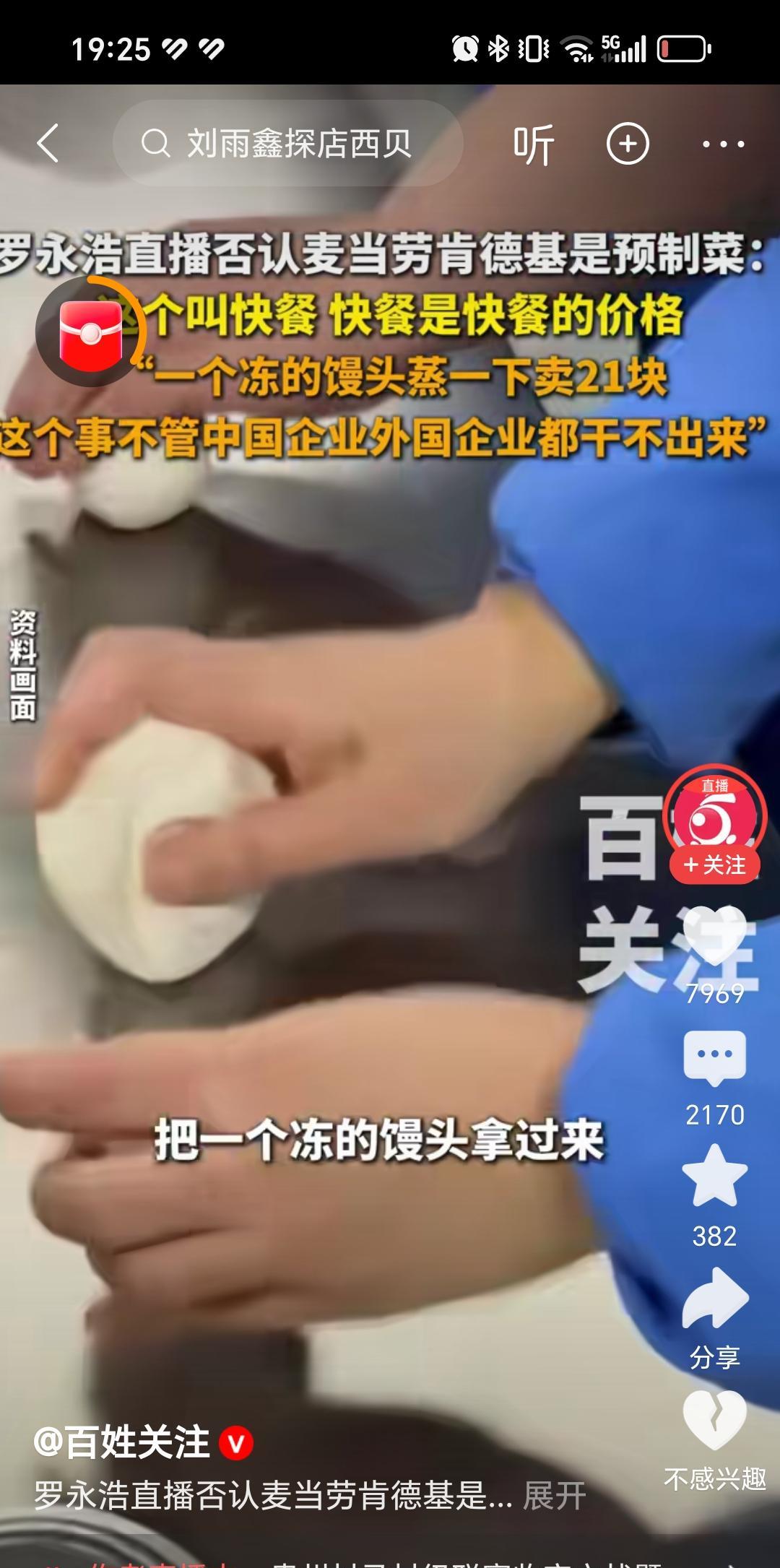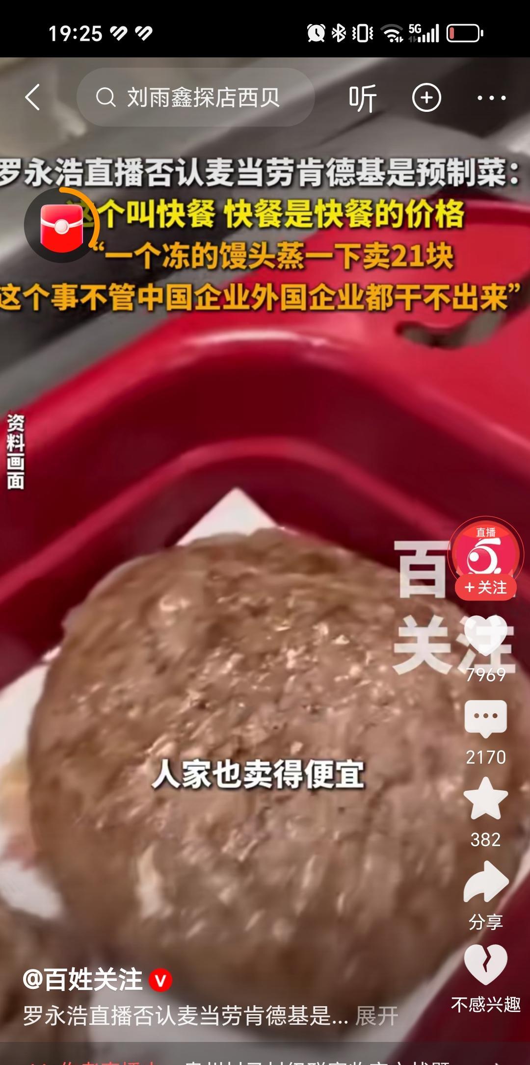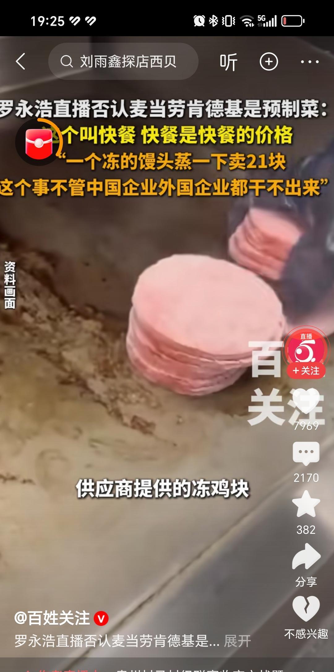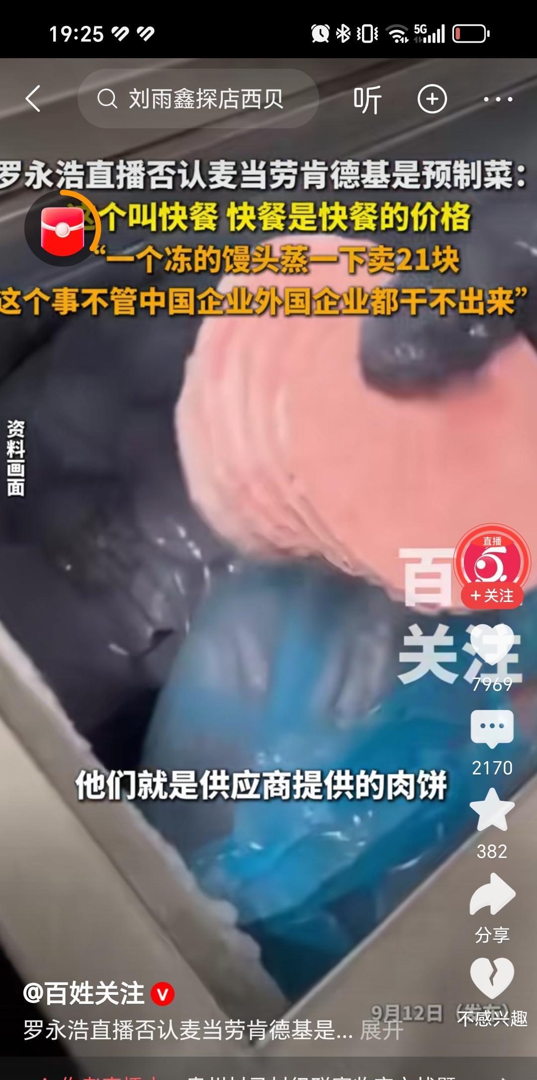 罗永浩直播真的给了现在年轻人当头一棒,别以为大饭店就都是现炒现卖的。看看第一次知道西兰花还能24个月保质期我真的开眼了,我以为西兰花得超市当天买新鲜的,还有麦当劳快餐就是便宜不属于预制菜,因为他得煎熟。 现在很多年轻人吃外卖,吃的很多预制菜,但是大饭店还有我就不理解。一个冻馒头就21元,超市看着现蒸的不就2—3元一斤吗? 我感觉我是小县城的,我都是自己做饭感觉外面不干净,调料多。但是预制菜我接受不了,是不是有个微波炉和电磁炉就能开个饭店,太骗人了。