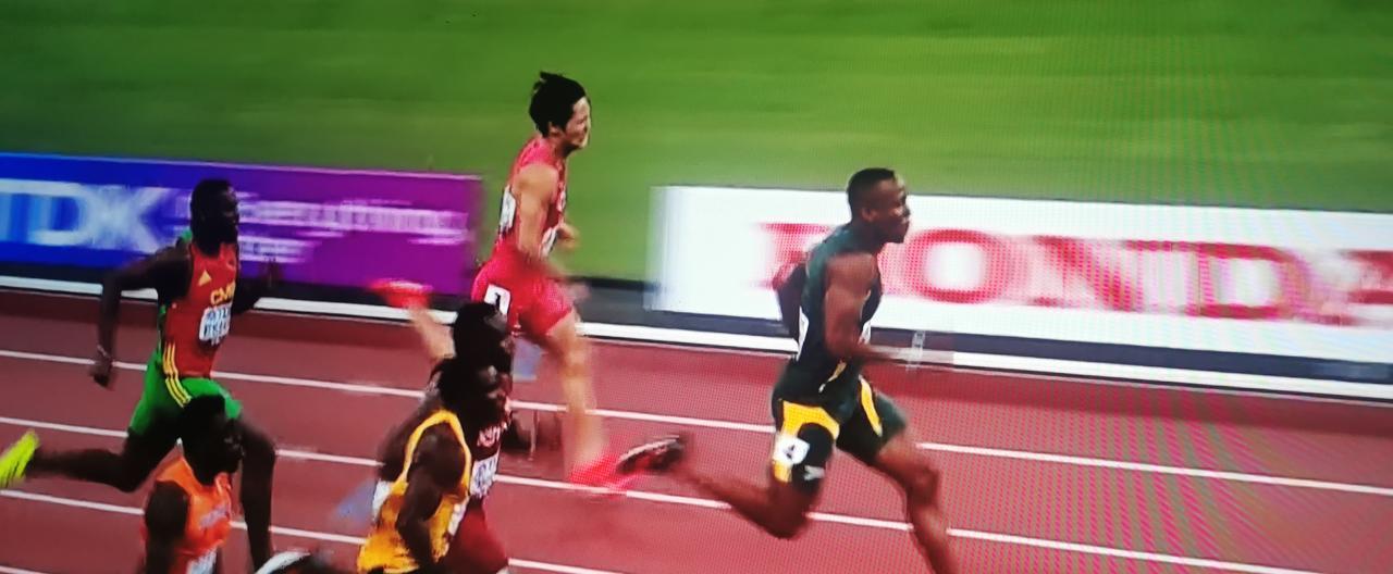 邓信锐跑的不错! 起泡最快,领先六十米,最后十米才被追上,小组第五,成绩10秒2