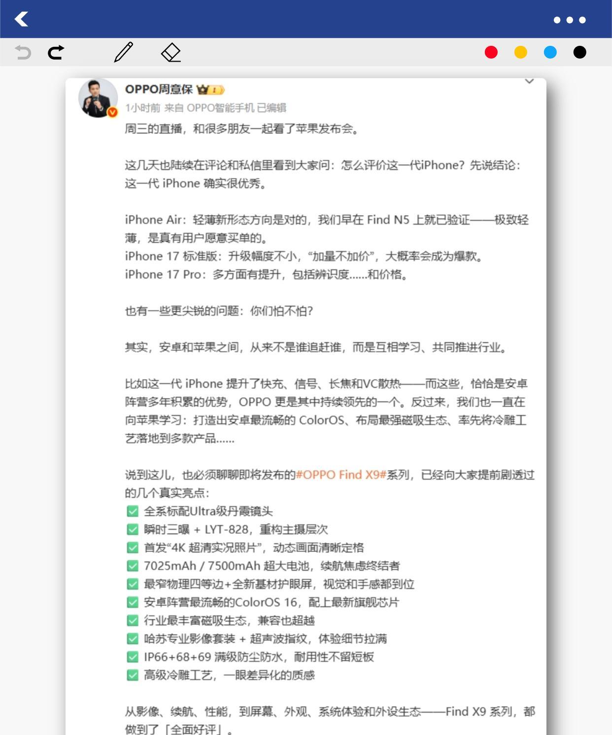 有点受不了,学生党买手机怎么这么难!大学生刚过完暑假,真的很想换个手机,实在不想看演唱会的时候租了,想买个长焦好一点的,iPhone 17好是好就是没有长焦,麻了。。。 主要是网上很多夸的,说要首发4K Live,我自己平时也经常拍实况所以还蛮心动的,丹霞镜头、高刷护眼屏、大电池这些也很戳我,人家高管还说什么要全面好评,大家觉得值不值得入哦? #学生党# #OPPOFindX9系列# #OPPOFindX9Pro# #FindX9全面好评# #我的第一张4k超清live# #学生党好物# #不懂就问##数码大玩家#