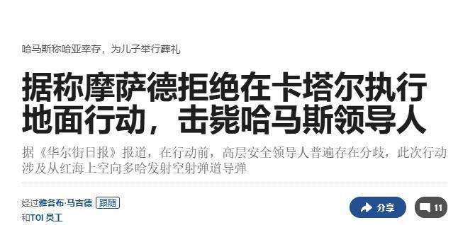 以色列为何选择空袭卡塔尔?内塔尼亚胡的暗杀命令,被摩萨德拒绝了 13日《以色列时报》和《华尔街日报》集中爆料了一轮以色列空袭卡塔尔的内幕信息,其中有几点值得注意:#卡塔尔:感谢中国坚定支持# 首先,以色列政治、军事和情报部门领导人就袭击卡塔尔的哈马斯成员分裂成两派,以色列国防军总参谋长扎米尔、摩萨德负责人戴维·巴尼亚,以及以色列国安委员会主席查扎·哈內比反对这一计划,而内塔尼亚胡、防长卡茨和以色列战略事务部长罗恩·德默则支持袭击; 摩萨德和以色列国防军反对暗杀卡塔尔哈马斯领导人的理由,是担忧这会破坏巴以谈判并激怒特朗普,因为当时哈马斯正在就特朗普提出的和平方案进行讨论。 其次,内塔尼亚胡原本打算由摩萨德特工通过地面行动,直接暗杀卡塔尔的哈马斯领导人,但由于摩萨德负责人戴维·巴尼亚反对袭击计划,摩萨德拒绝执行内塔尼亚胡的命令,因此内塔尼亚胡只能让“辛贝特”接管任务,暗杀计划不得不升级为明目张胆的空袭。 最后,以色列的美制“闪电”战机(F-35)也参与了此次行动,4架战机从以色列南部飞越红海,然后从阿拉伯半岛另一侧向卡塔尔发射弹道导弹——这或许解释了为什么周边的海湾国家没能发现以军战机入境。 美军的太空传感器倒是探测到以色列导弹的热信号,但当确认袭击目标是卡塔尔首都时,美军已经来不及通知卡塔尔和特朗普;而以色列直到导弹发射几分钟前才向美国通报,令得知消息后的特朗普非常不满。